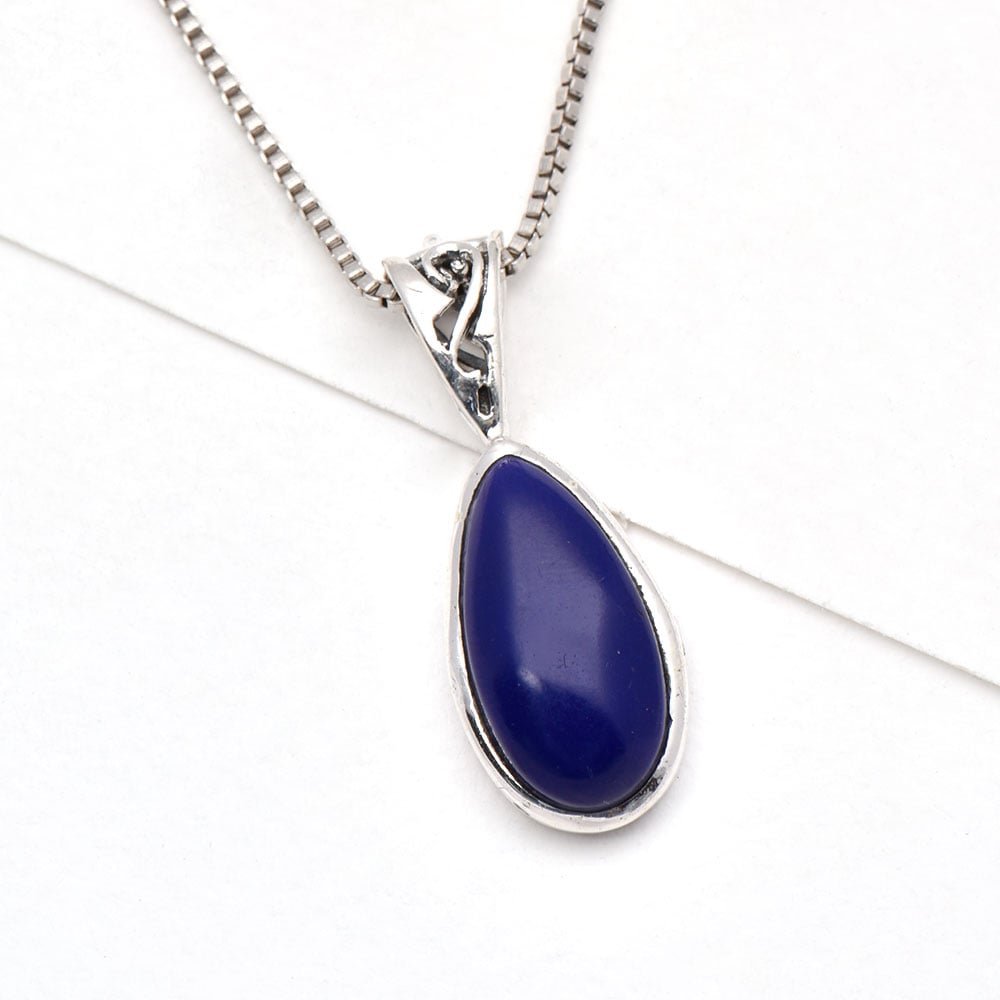 • 92.5 Sterling Silver Pendant Long Teardrop Shaped Blue Tourmaline Gemstone Pendant