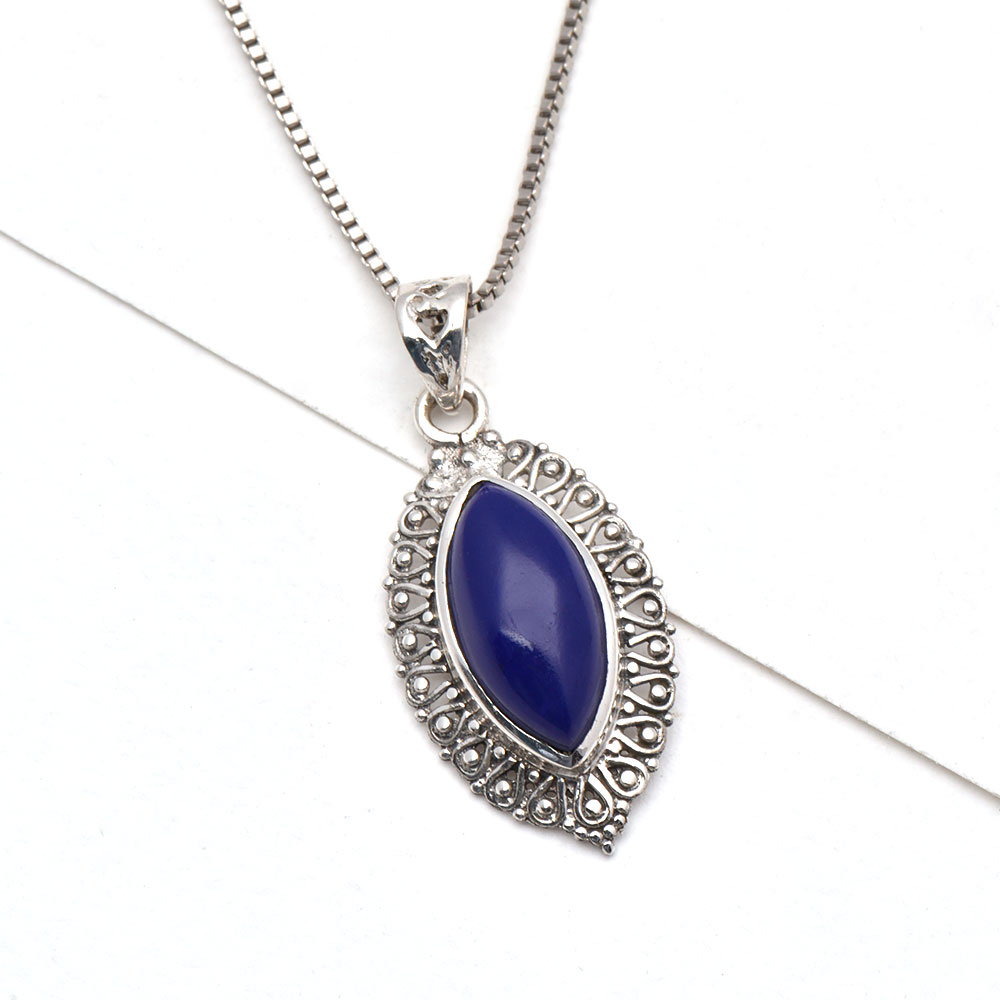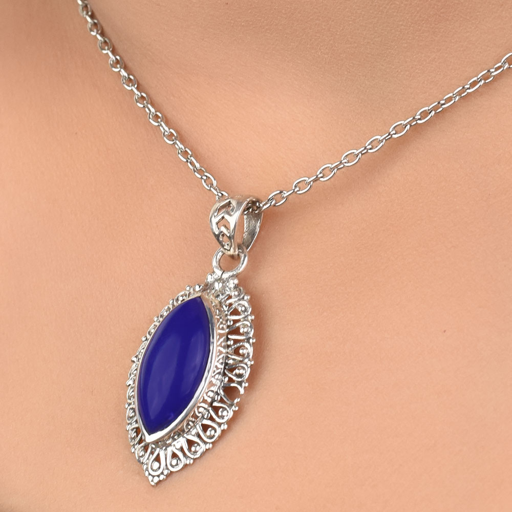 • 92.5 Sterling Silver Pendant Marquise Shaped Blue Tourmaline Gemstone Pendant