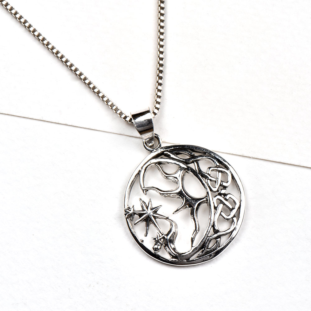 92.5 Sterling Silver Pendant Moon Stars And Tree Of life Roots Design