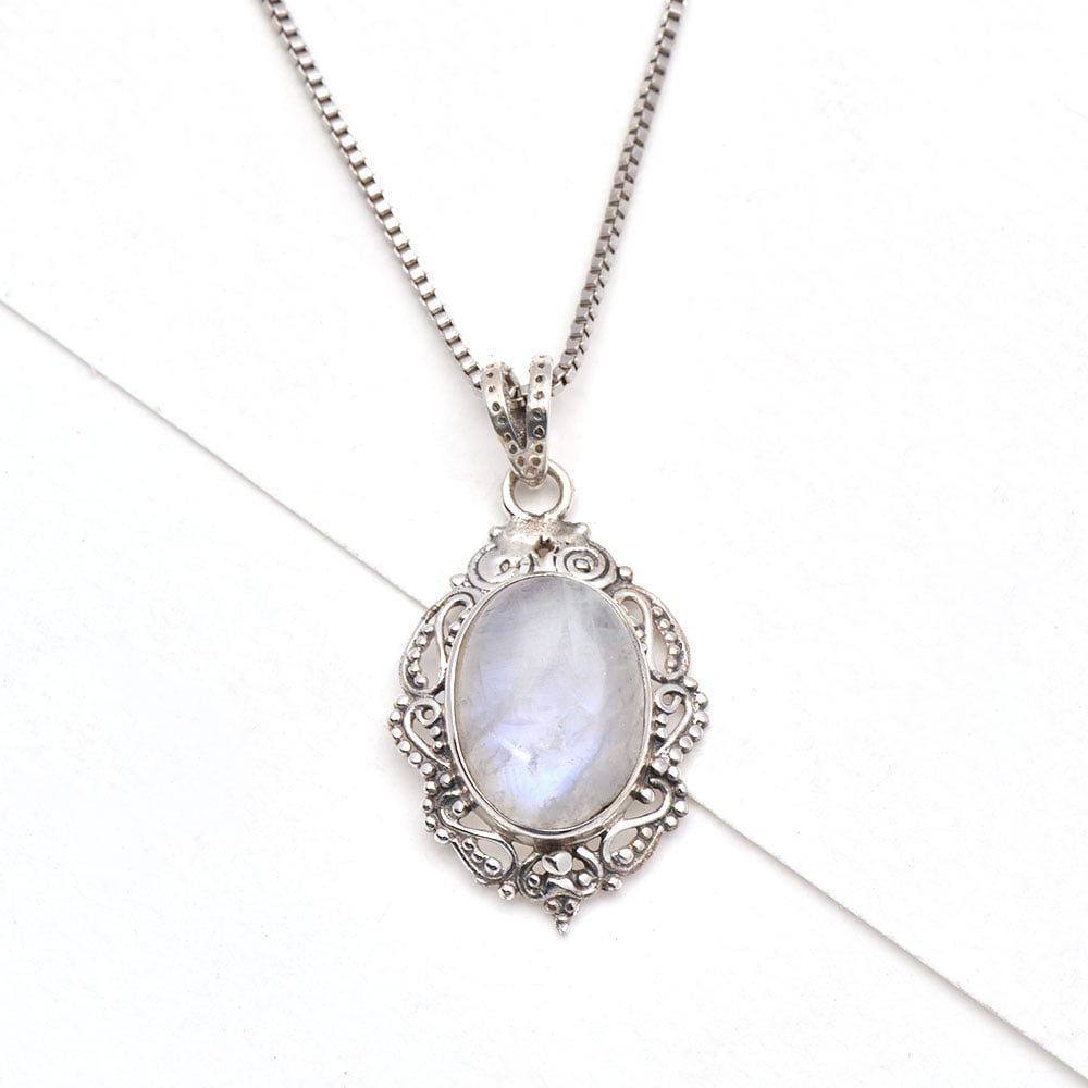 • 92.5 Sterling Silver Pendant Natural Moonstone Handmade Solitaire Pendant