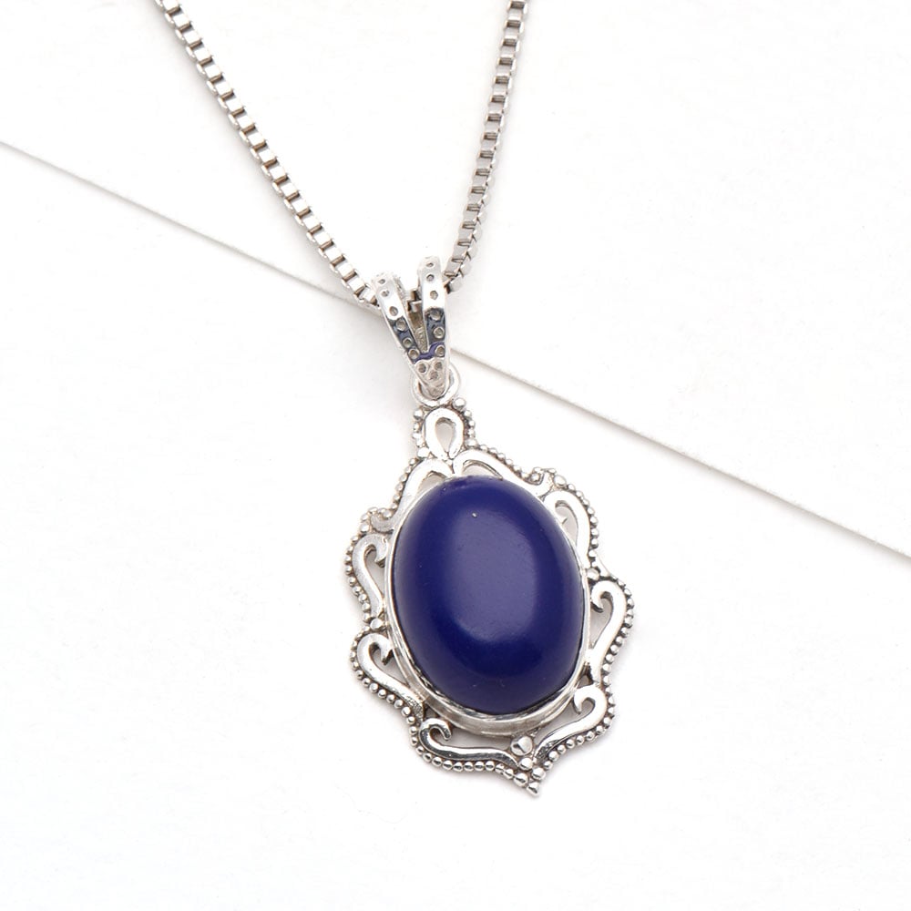 This elegant and traditional pendant comes in a dark midnight blue stone Tourmaline gemstone, which is often compared to looking at the night sky stars. A simple but stunning stone in a silver frame. Ideal for gifting and perfect for everyday or that special night out.