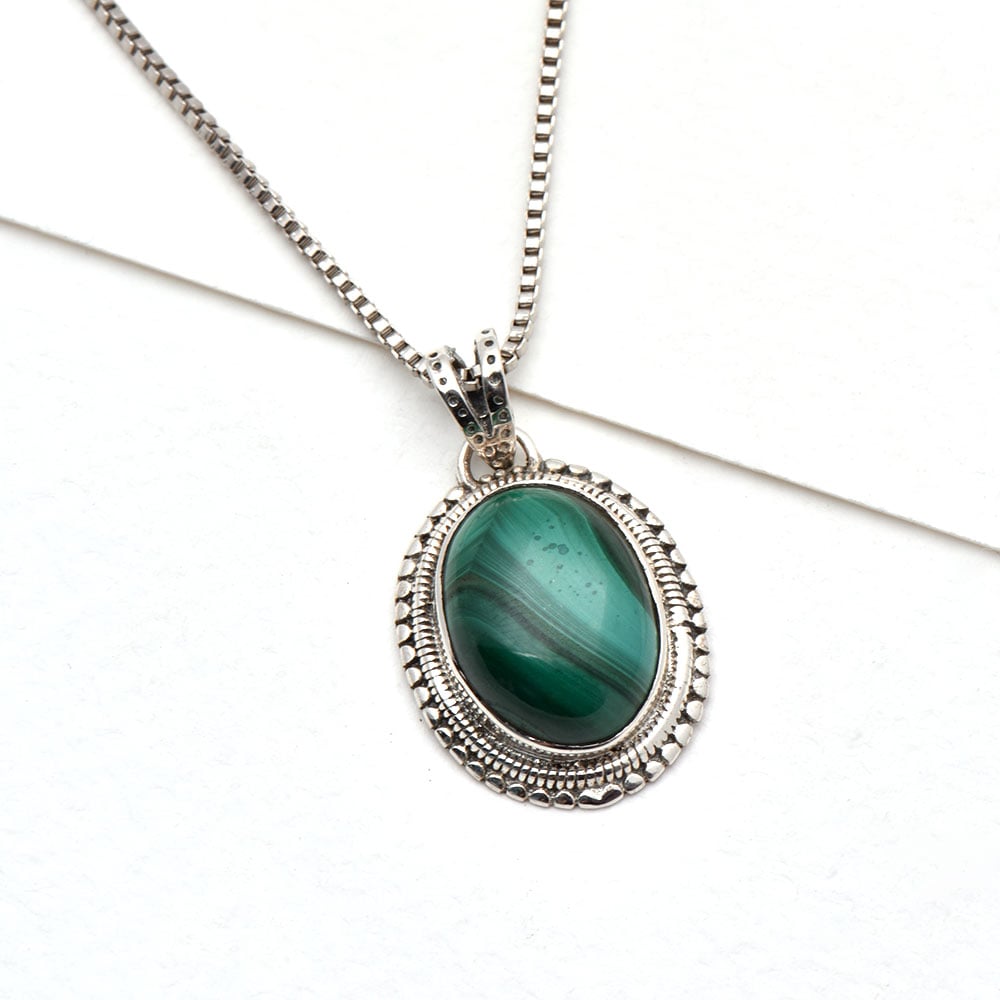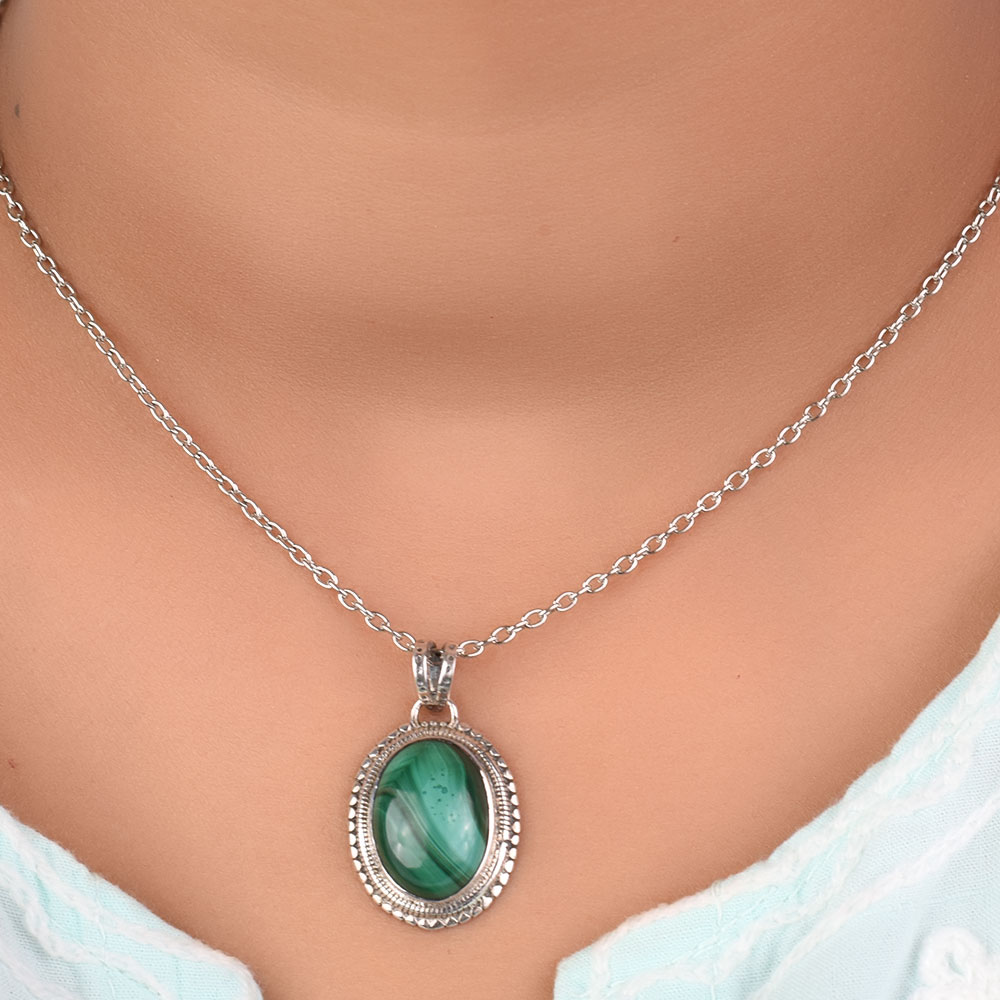 Dazzle everyone with our silver pendant chain for women made in 925 Sterling Silver and Semi-Precious Stone Green Malachite. Suitable for Any Season these pure silver pendant would make a great birthday gift, anniversary gift, mother's day gift, valentine's day gift, Christmas gift, wedding gift.