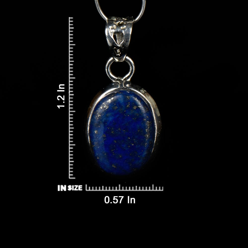 This elegant and traditional pendant comes in a dark blue with glitters Lapis Lazuli gemstone, which is often compared to looking at the night sky stars. A simple but stunning stone in a silver frame. Ideal for gifting and perfect for everyday or that special night out.