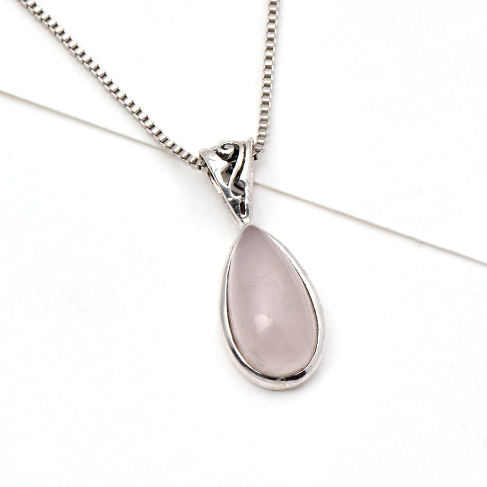 92.5 Sterling Silver Pendant Rose Quartz Pear Shaped Pendant