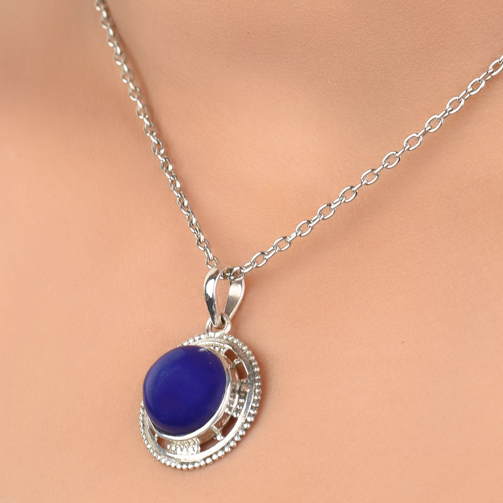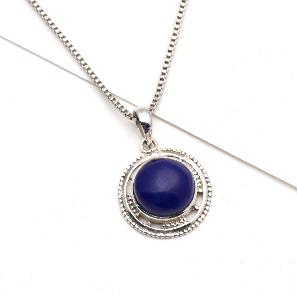 • 92.5 Sterling Silver Pendant Round Blue Tourmaline Gemstone Pendant