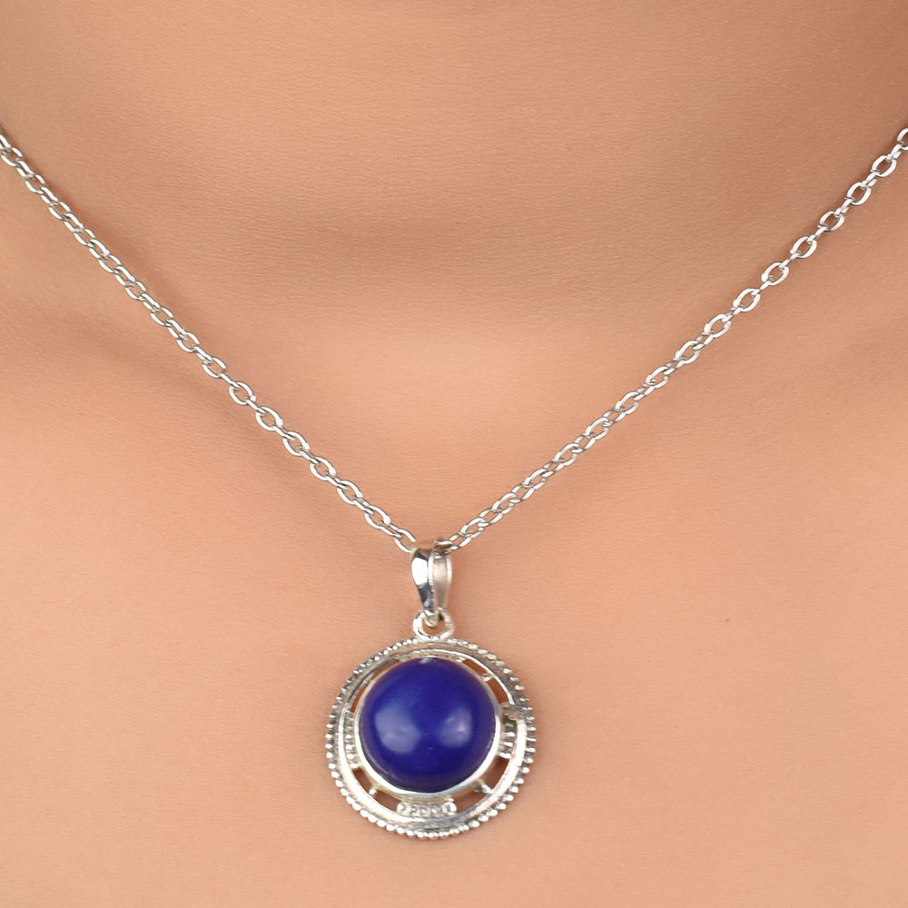 92.5 Sterling Silver Pendant Round Blue Tourmaline Gemstone Pendant