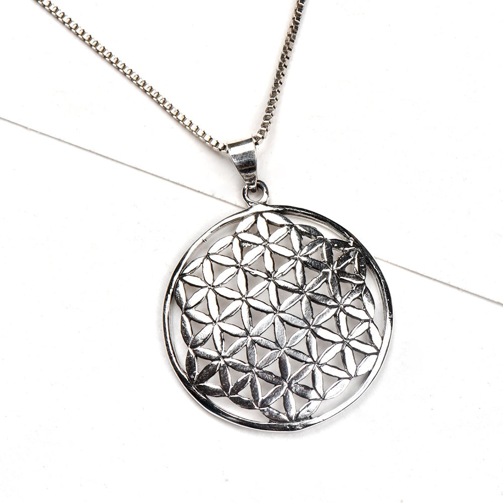 92.5 Sterling Silver Pendant Round Sacred Flower Of life In Hexagonal Design