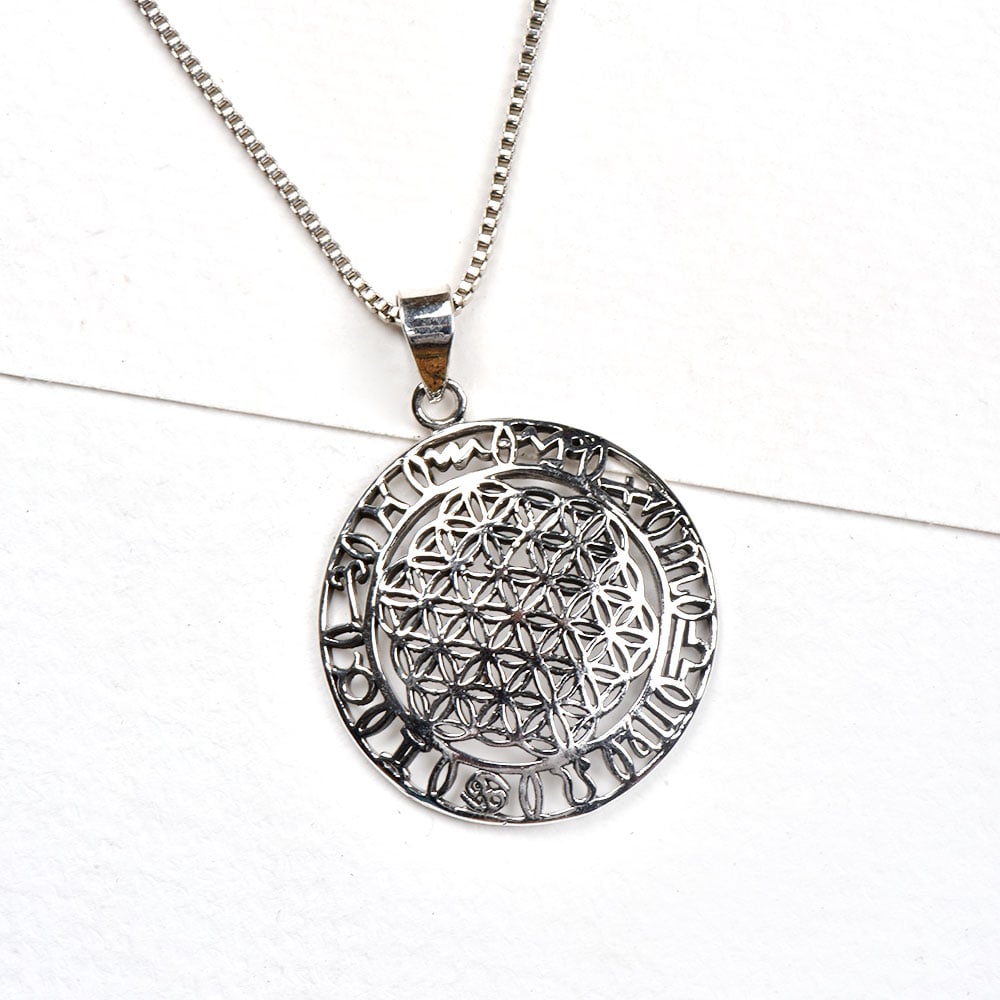 • 92.5 Sterling Silver Pendant Sacred Flower Of Life And Circular Ring Of Zodiac Signs