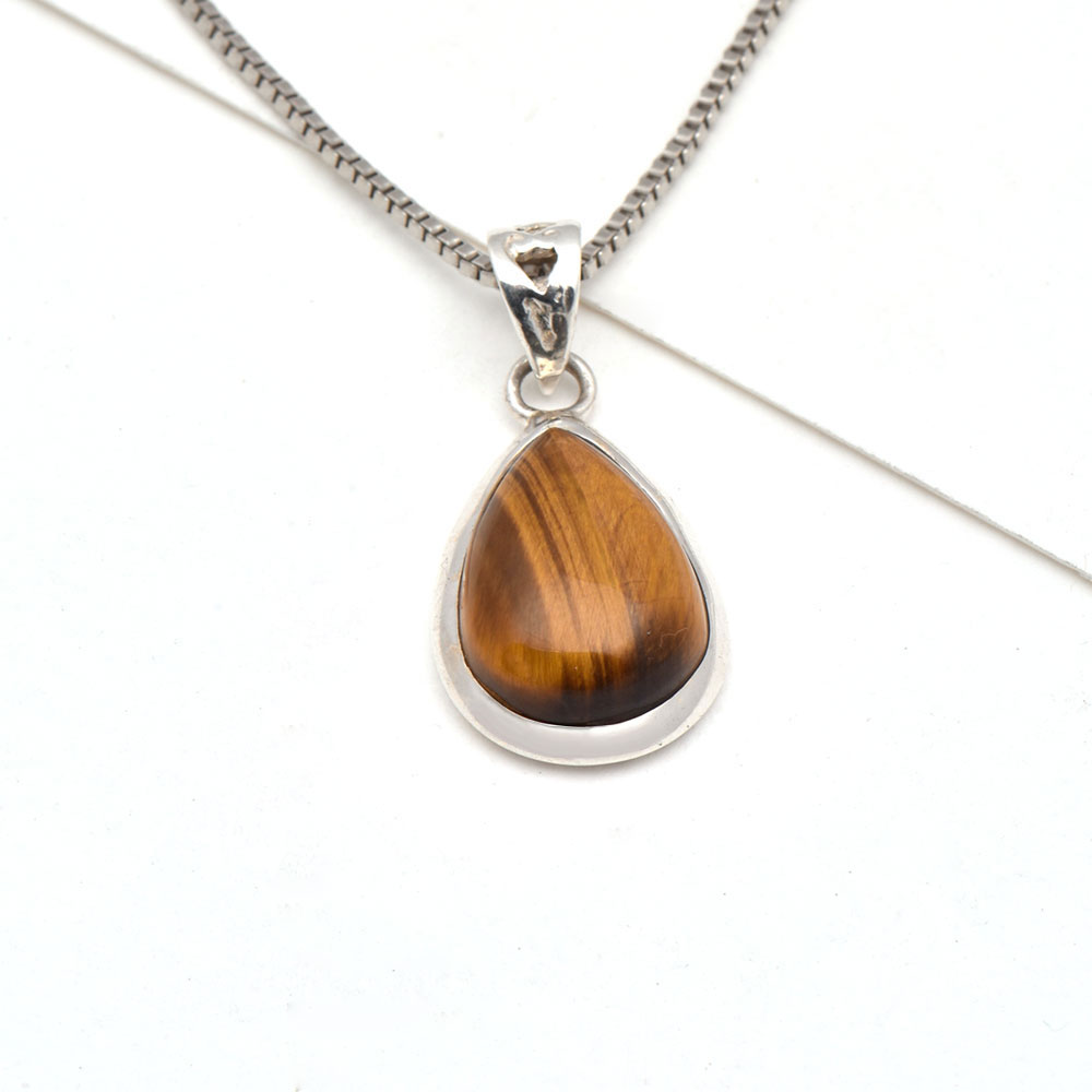 • 92.5 Sterling Silver Pendant Single Tiger Eye Pendant