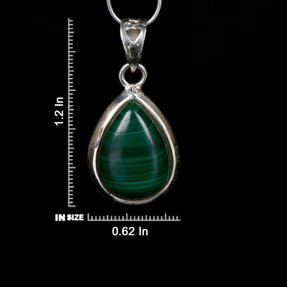 • 92.5 Sterling Silver Pendant Studded With Bezel Set Green Malachite Tear Drop Shape