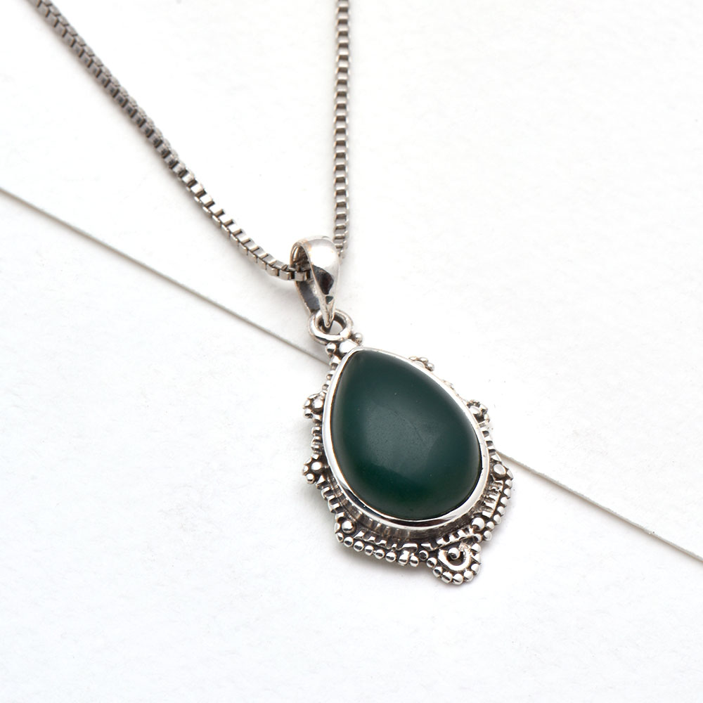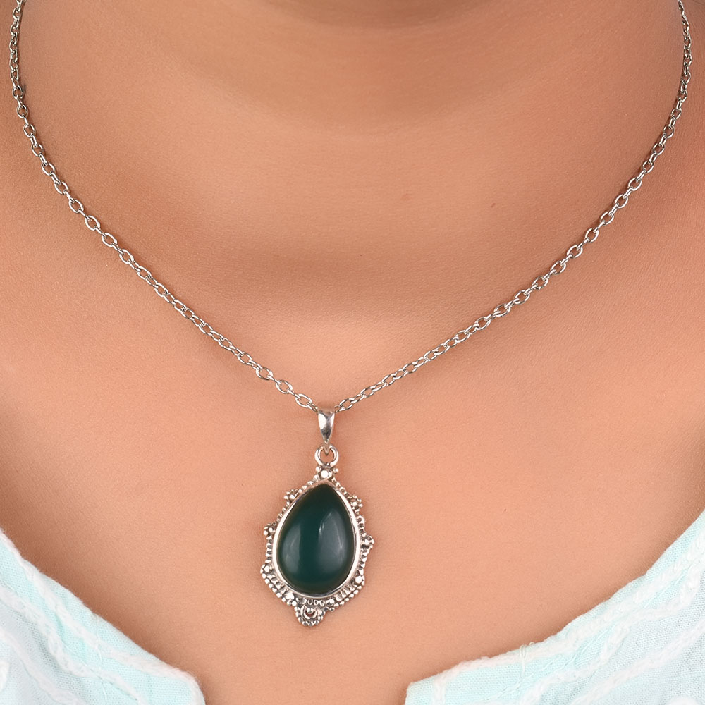 92.5 sterling silver with teardrop green Onyx gemstone have a stylish look due to its unique pattern. It's the classic design of the jewelry that makes it attractive for you to wear. The jewelry is simple, different and beautiful that everyone is going to love.