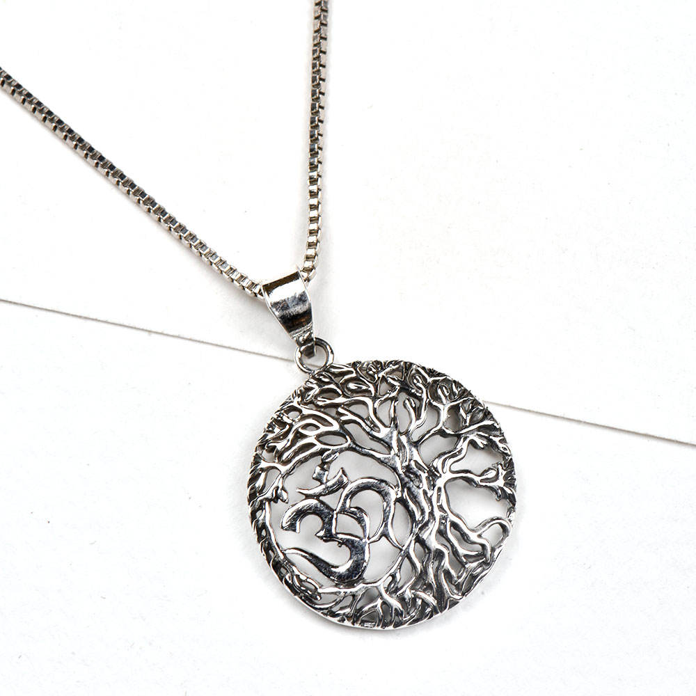 • 92.5 Sterling Silver Pendant Tree of life And Aum Design
