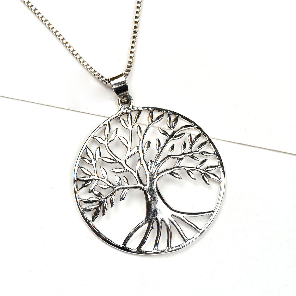 92.5 Sterling Silver Pendant Tree Of Life In A thin Circular Border