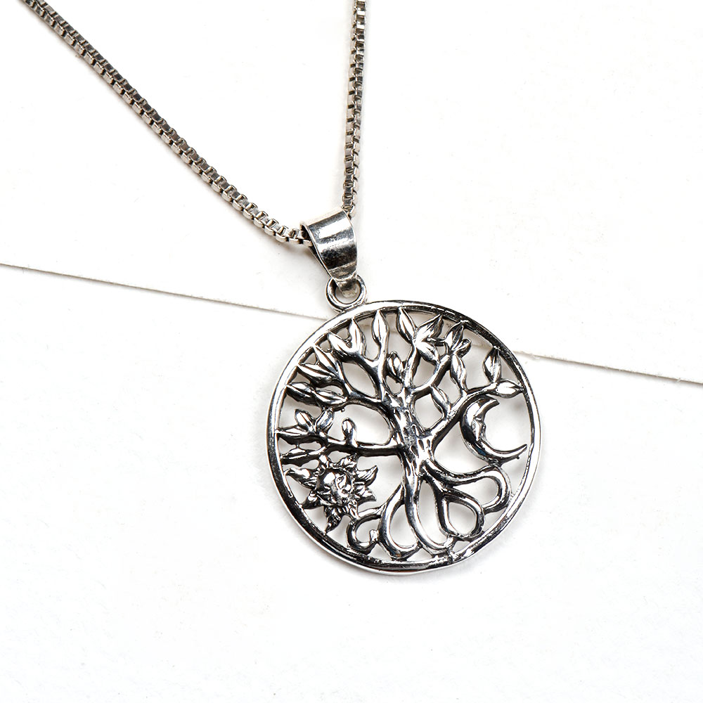 • 92.5 Sterling Silver Pendant Tree of Life With Crescent Moon And Sun Design