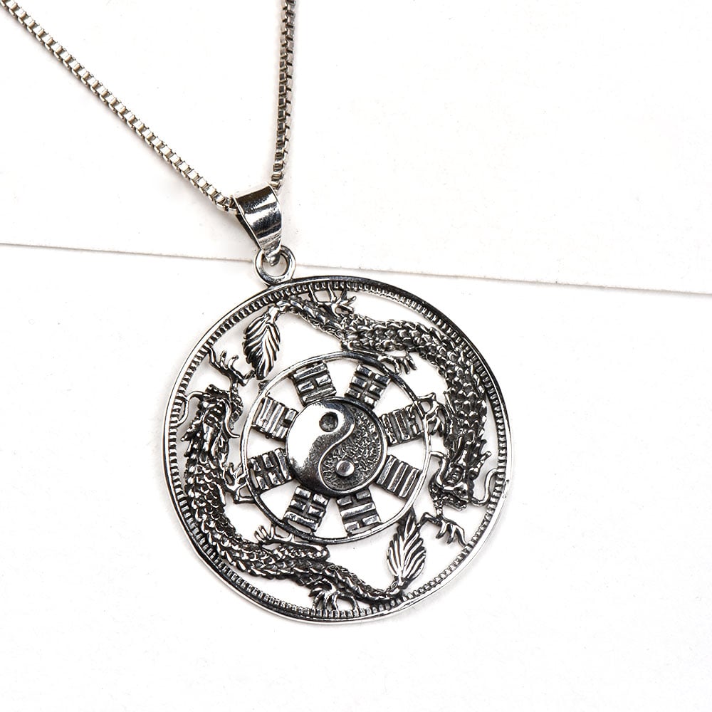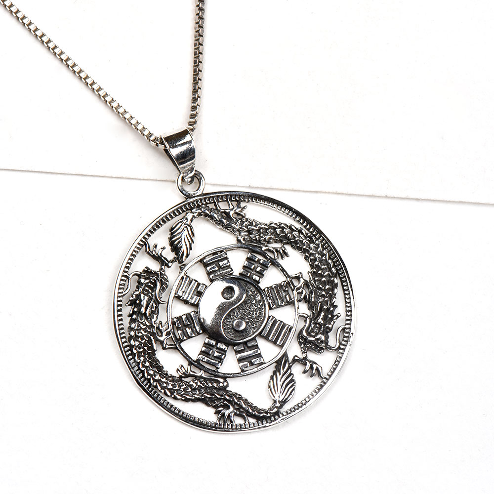 • 92.5 Sterling Silver Pendant Ying Yang In Centre And Brick Dragon Design