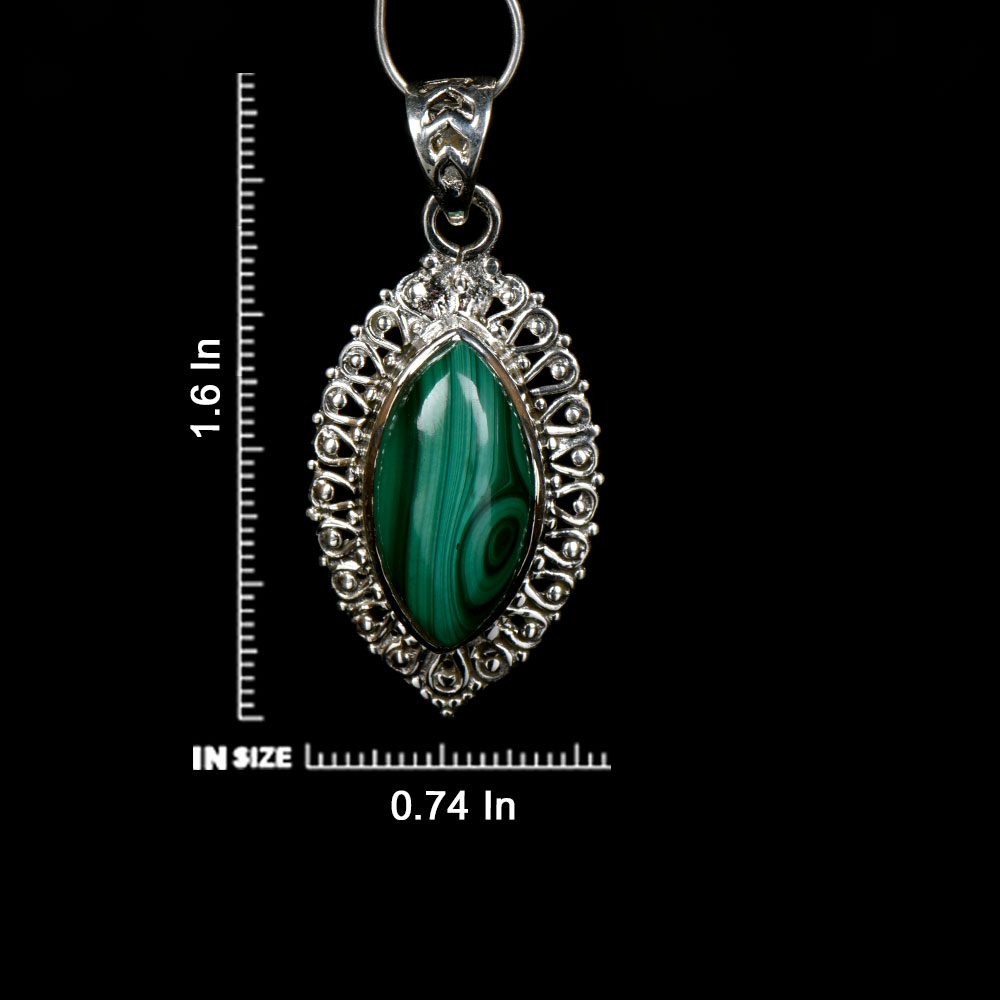• 92.5 Sterling Silver Pendent Green Malachite With Traditional Border Design