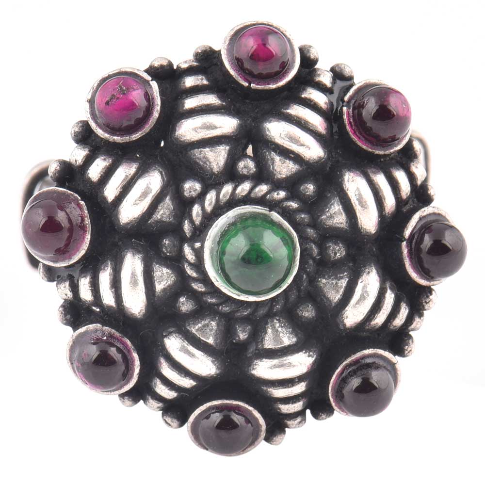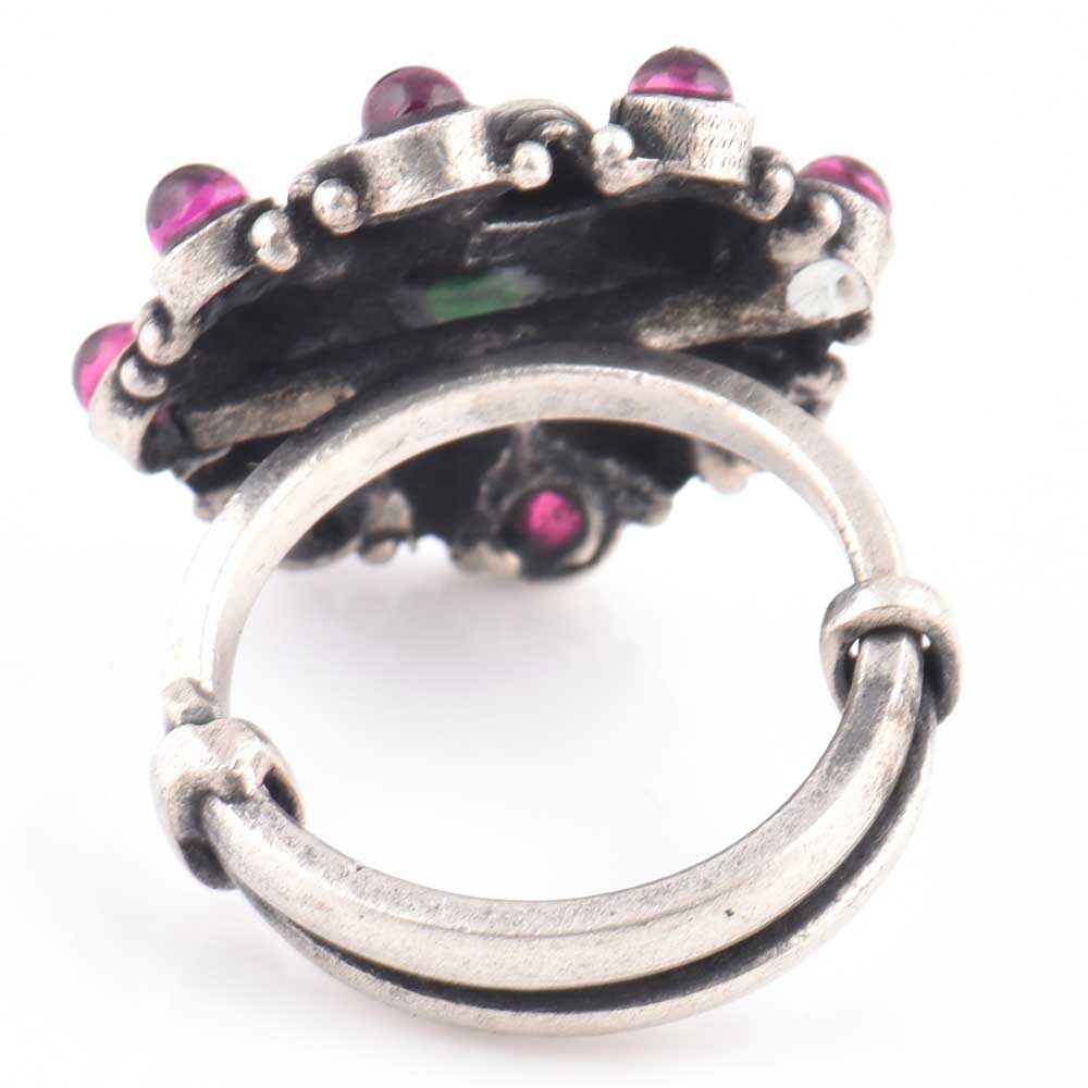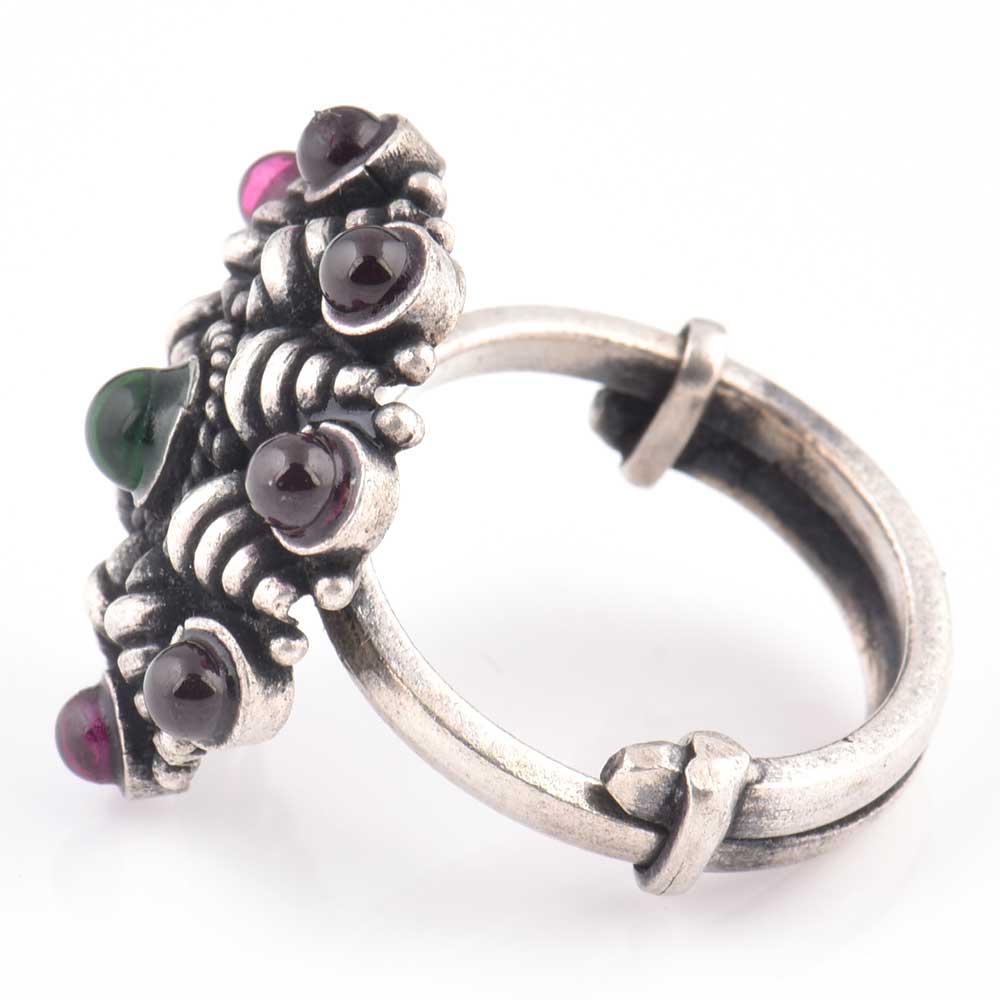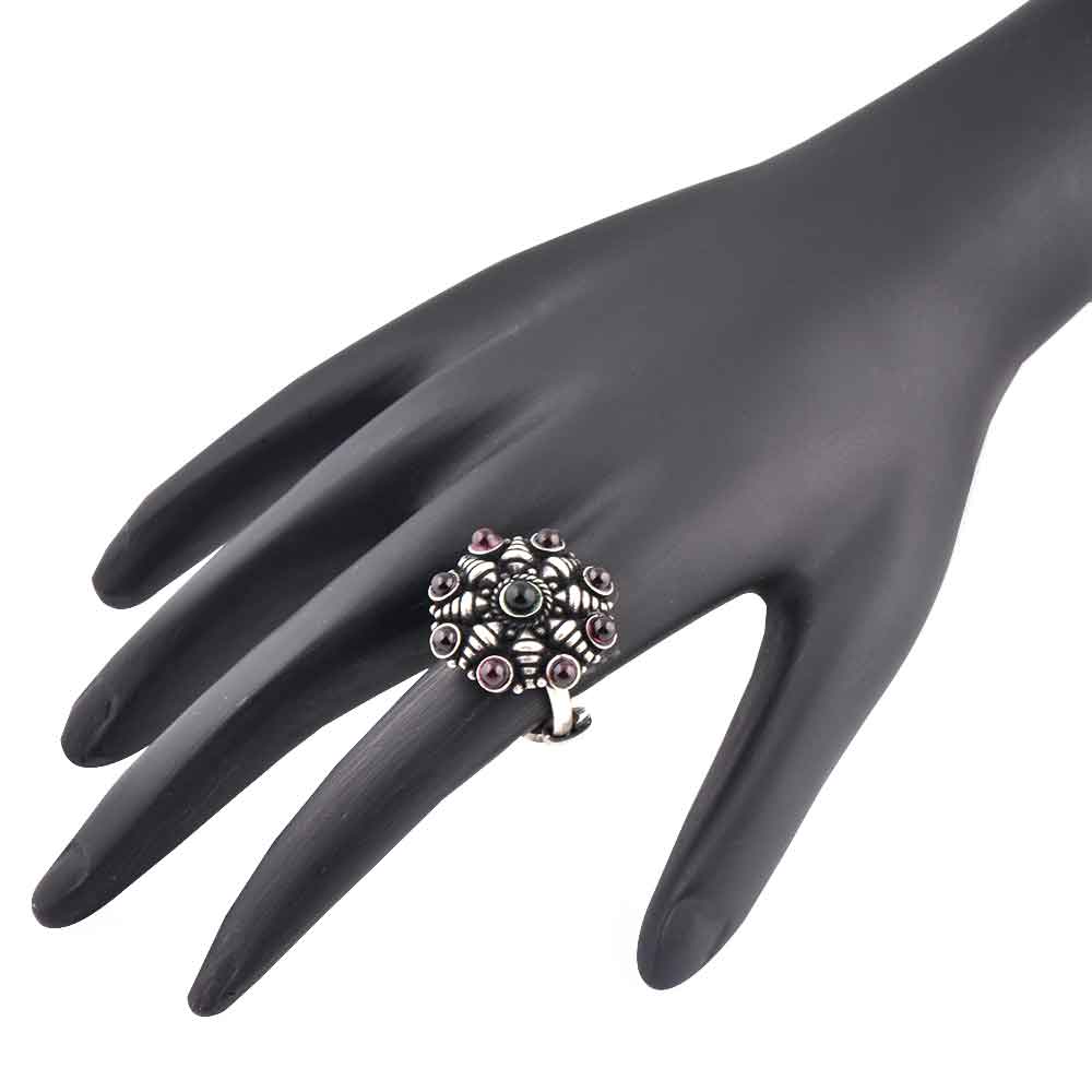 • 92.5 Sterling Silver Ring Conch Starry Design Amethyst and Onyx Wedding Wear (Free Size)