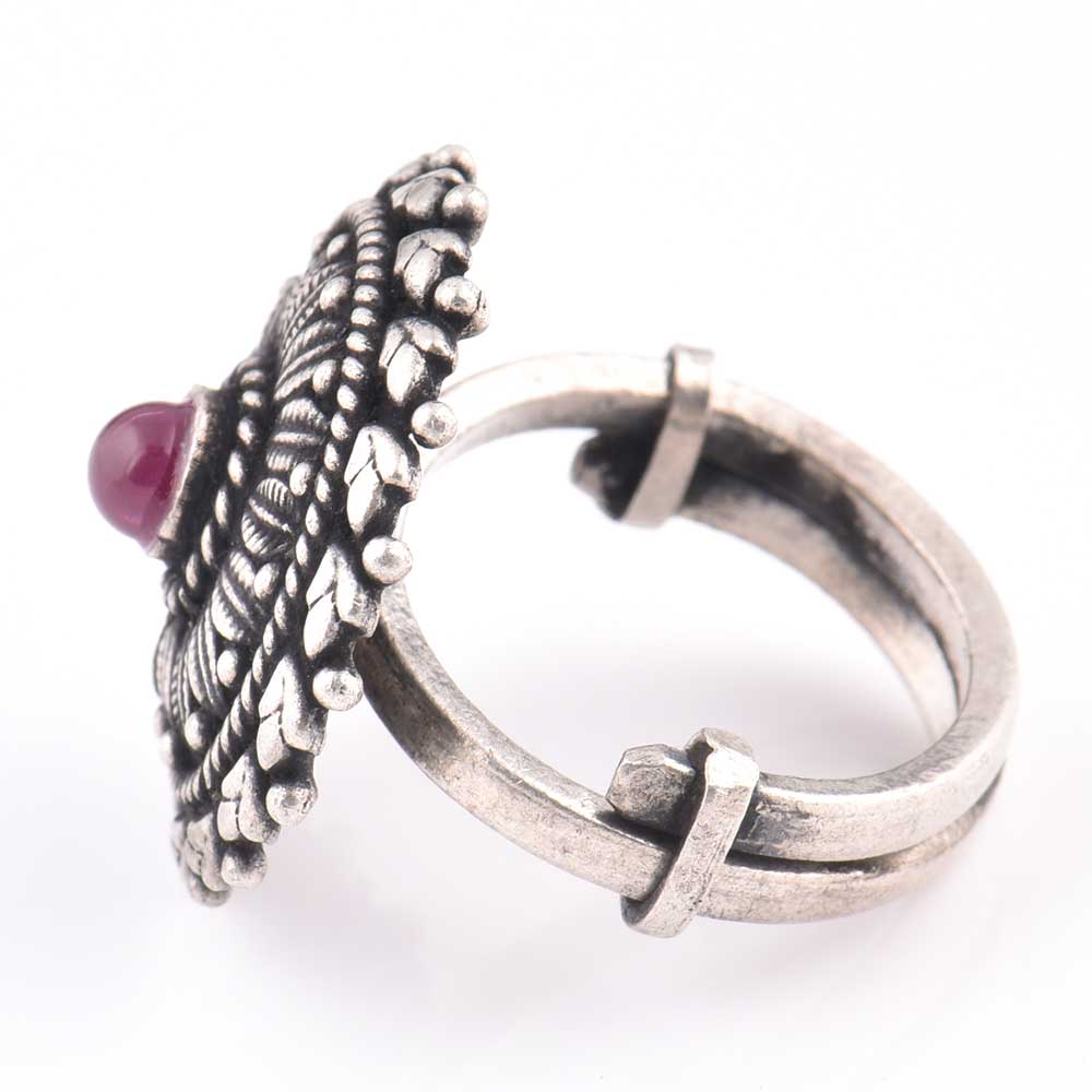 A very fine detailing of leafy motifs on this 92.5 sterling silver ring makes it the perfect jewelry complimenting your traditional outfit like sari, lehenga salwar suit, a long flowing cotton frock or dress . Wear it on your first date, cocktail party, wedding party, anniversary etc.