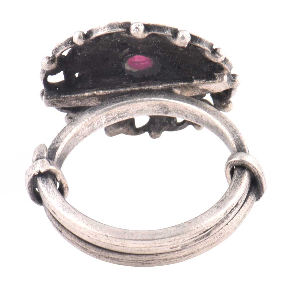 • 92.5 Sterling Silver Ring Oxidized Adjustable Amethyst Studded Engraved Design Designer Ring (Free Size)