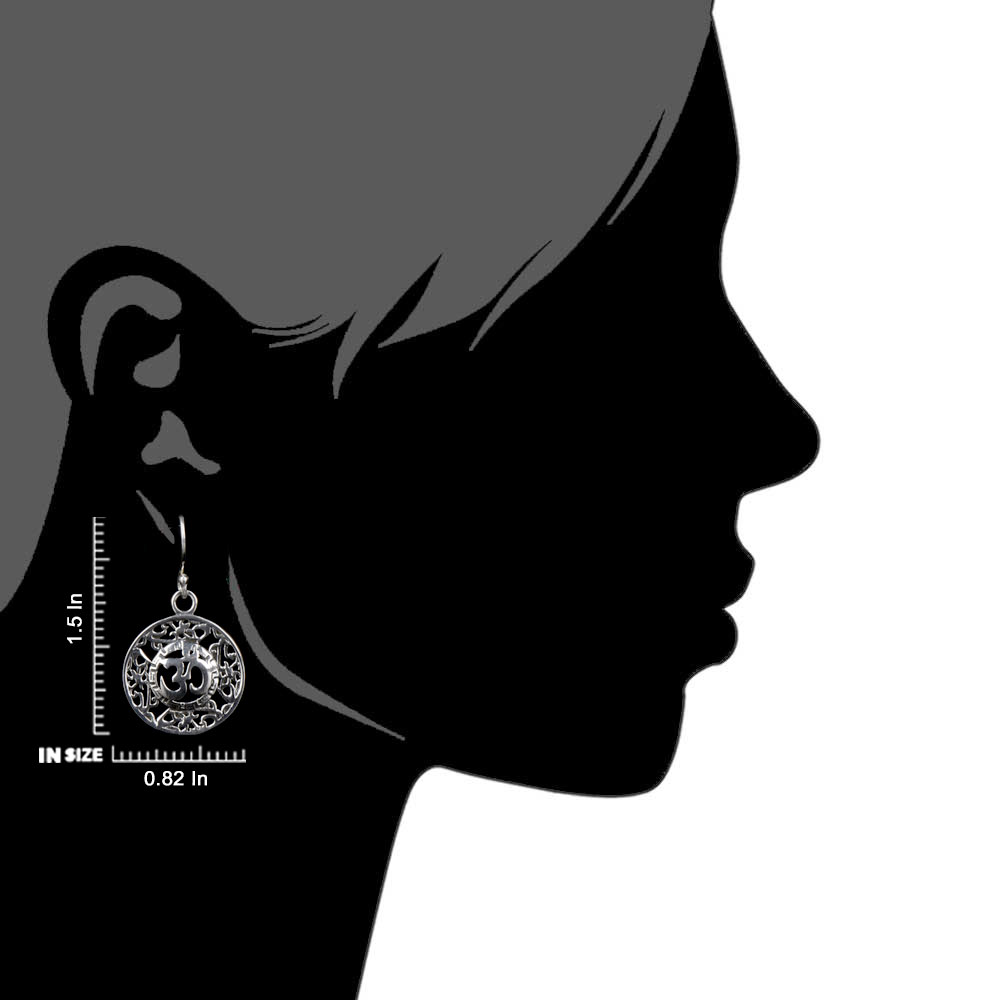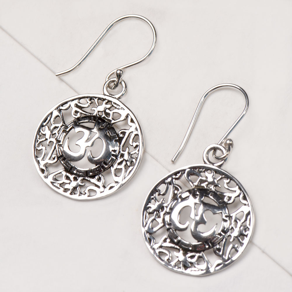 92.5 Sterling Silver Round Filigree Aum Om Centre Drop Earrings
