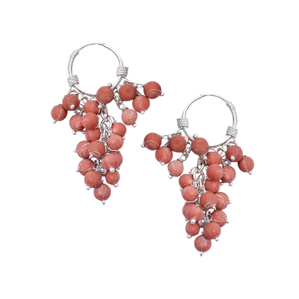 Design with round beaded drops and grape clusters in rust fancy party wear earrings for girls and women in 92.5 sterling silver. Ideal present for your friends and family on a party, birthday, Christmas wedding, ceremony etc.