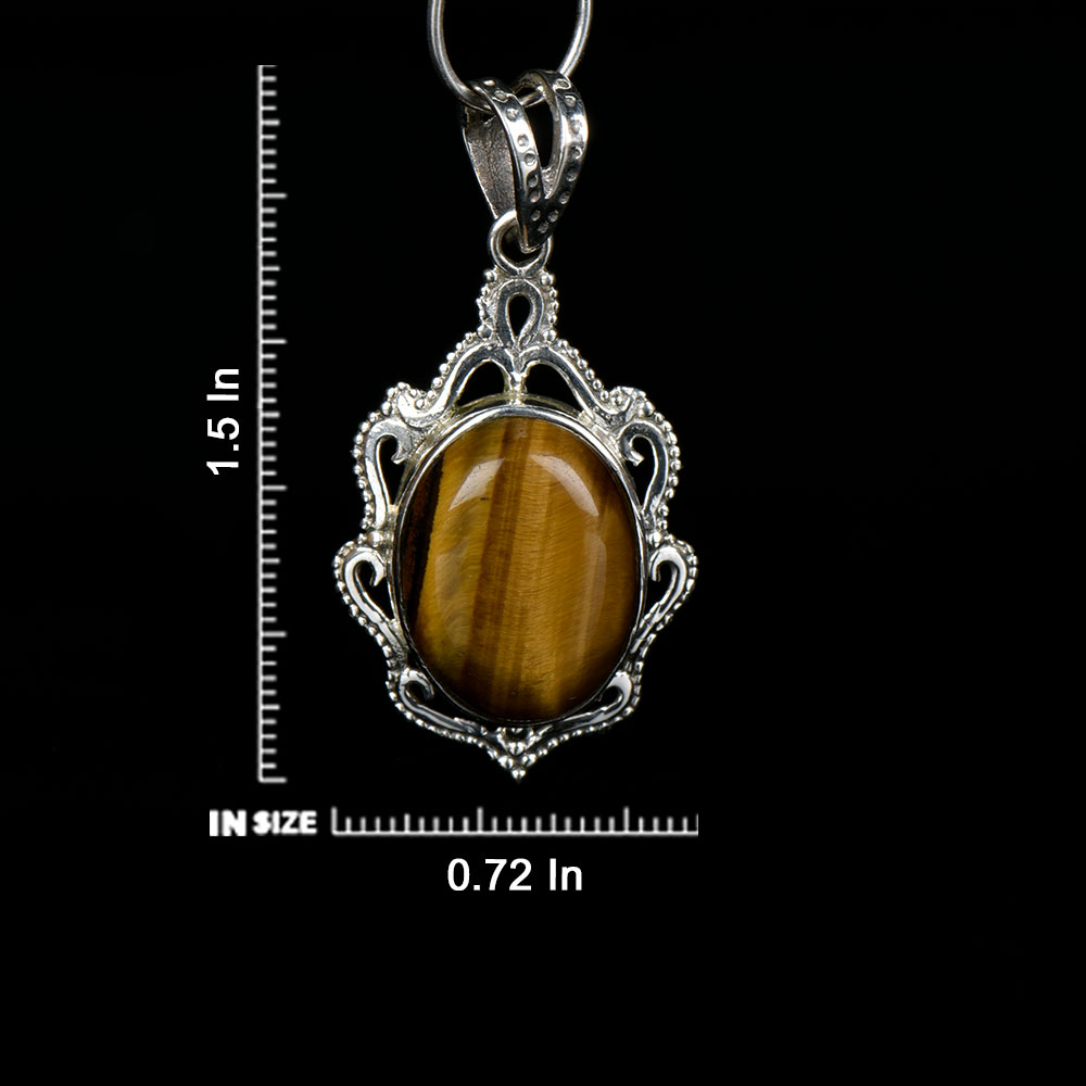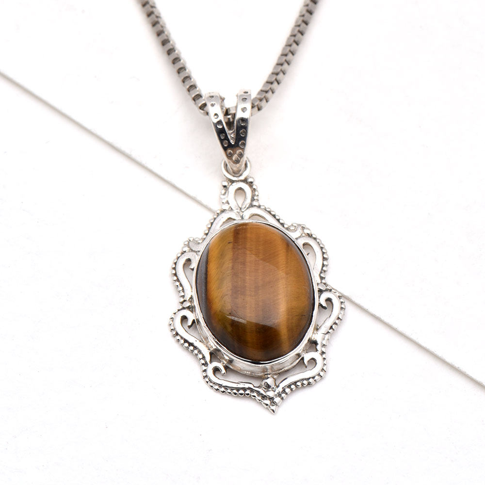 92.5 Sterling Silver Tiger Eye Pendant Statement Jewelry Oval Stone Designer Pendant