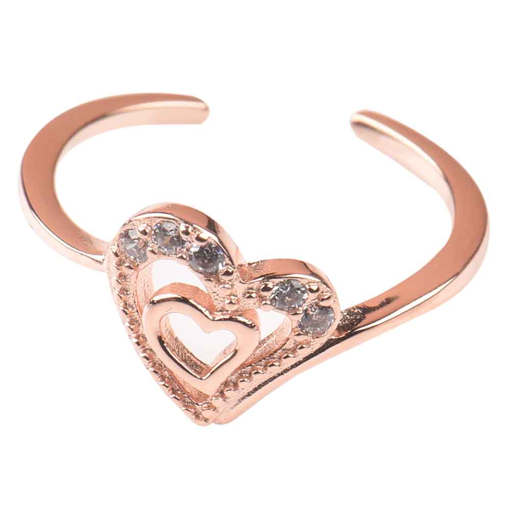 • 92.5 Sterling Silver Toe Ring With Double Heart For Women With Rose gold Polish (Pair)