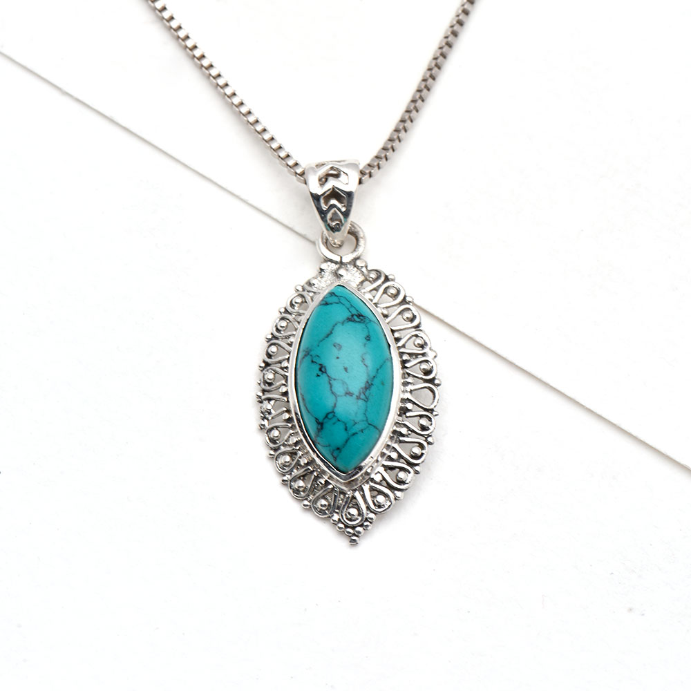 • 92.5 Sterling Silver Turquoise Pendant Marquise Delicate Wedding Gift