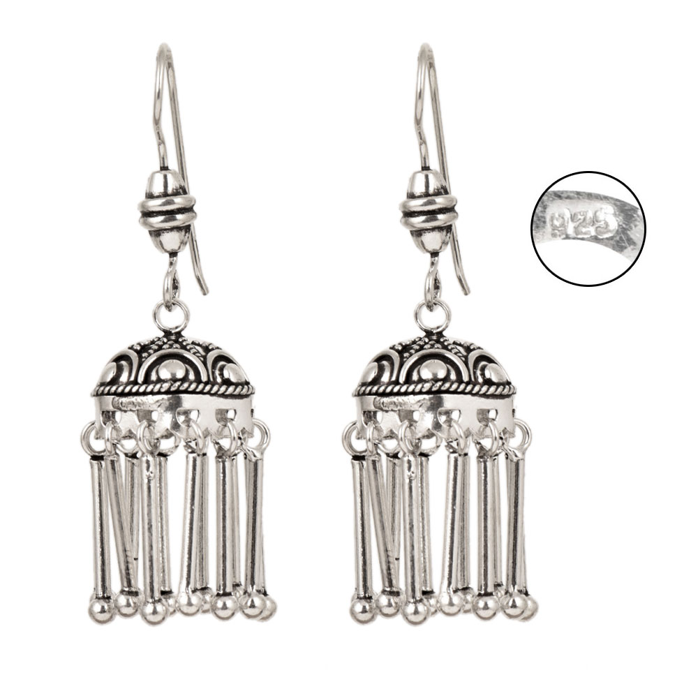 92.5 Sterling Sliver Earrings Dome Shaped Jhumkies With Silver Tassels