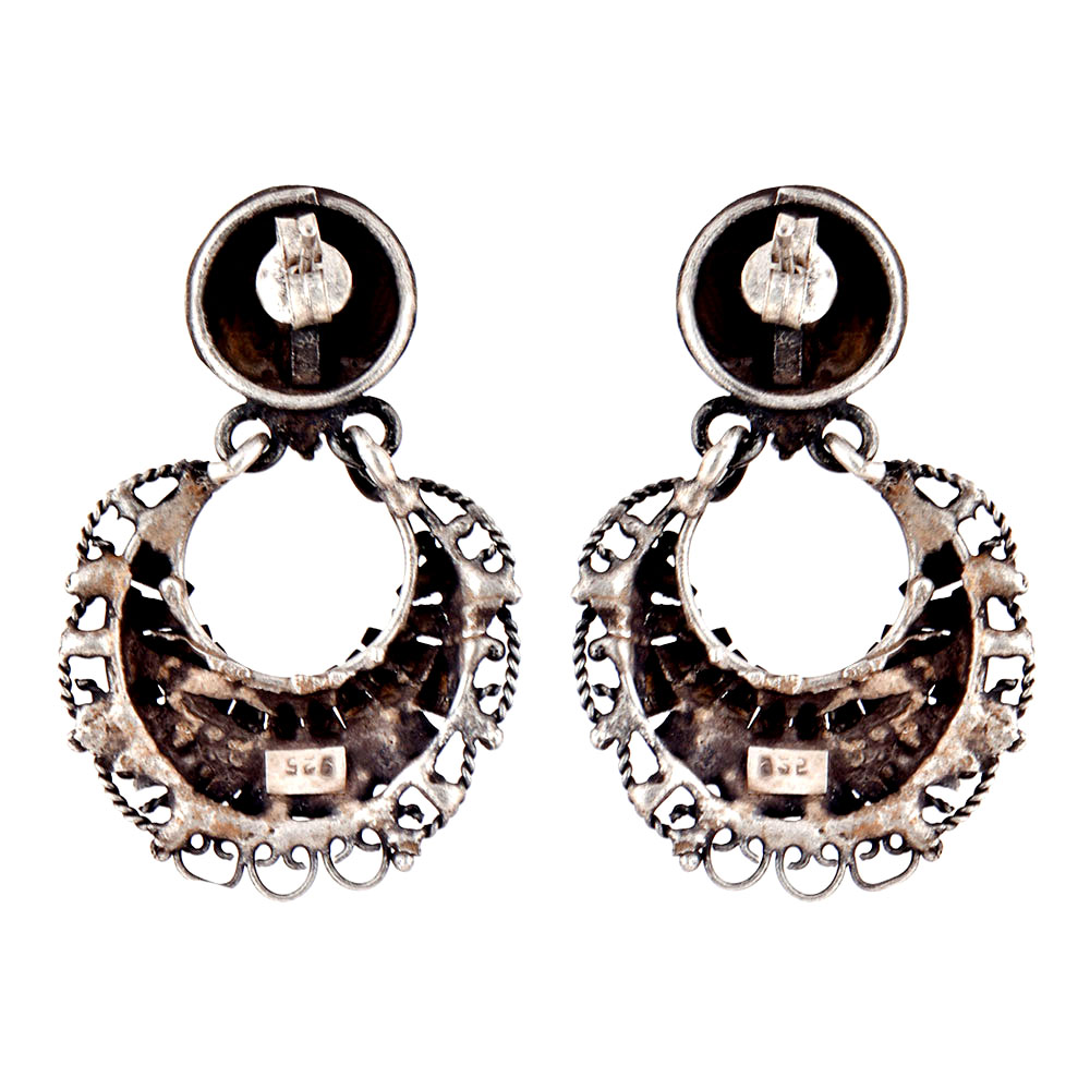• 92.5Sterling Silver Earrings with Floral Pattern Chand Bali Designer Earrings