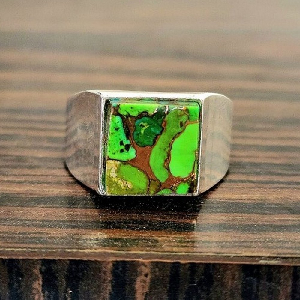 Celebrate the allure of our 925 silver green turquoise ring healing gemstone gift for men, where natural green copper turquoise, 925 sterling silver and bold come together to create a unique style. This ring is for gift givers, each piece reflecting individuality and care. Packed & quality-checked by Indianshelf.