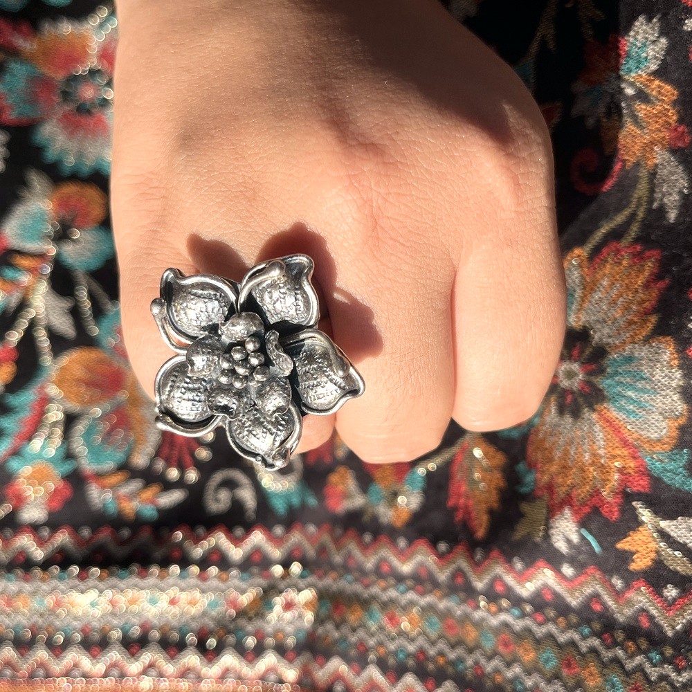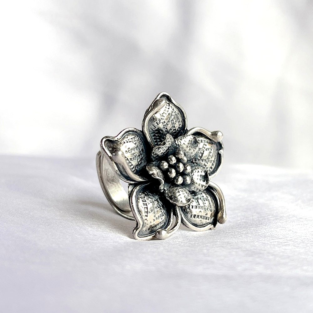 • 925 Sterling Silver Classic Flower Cocktail Adjustable Ring