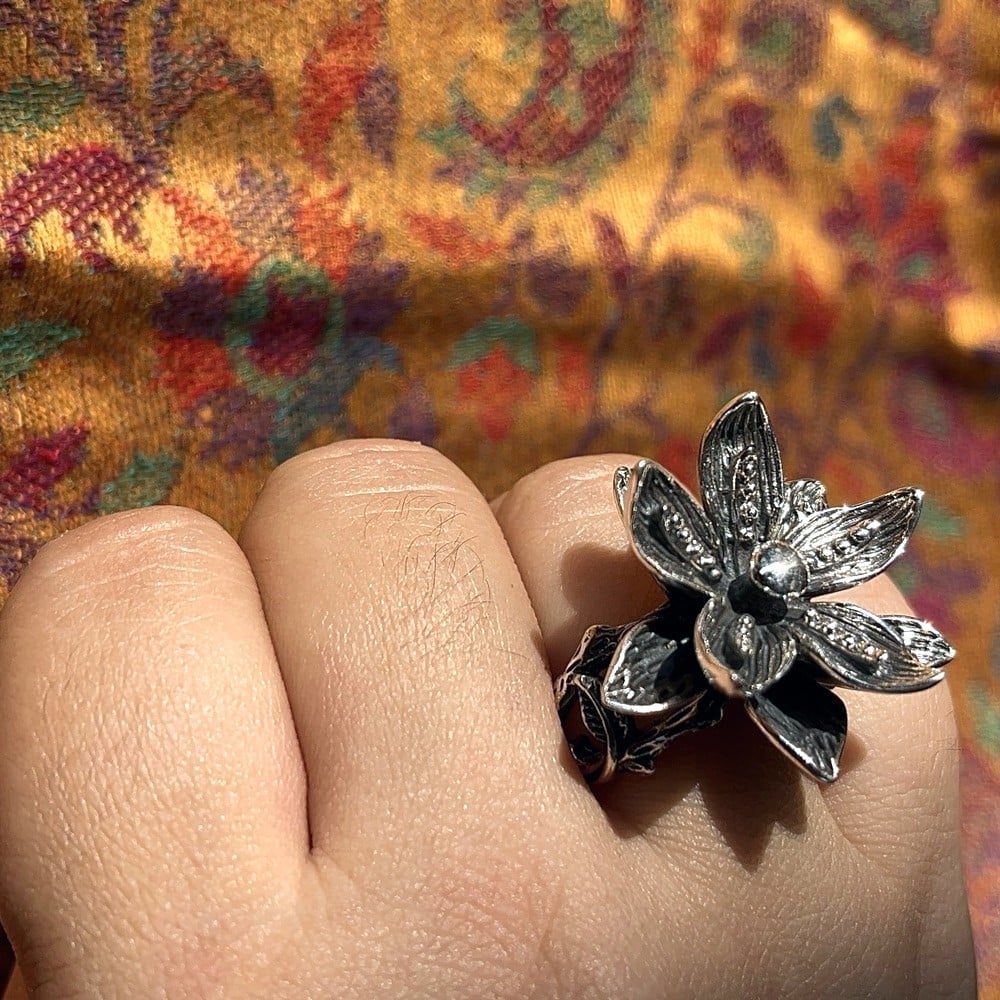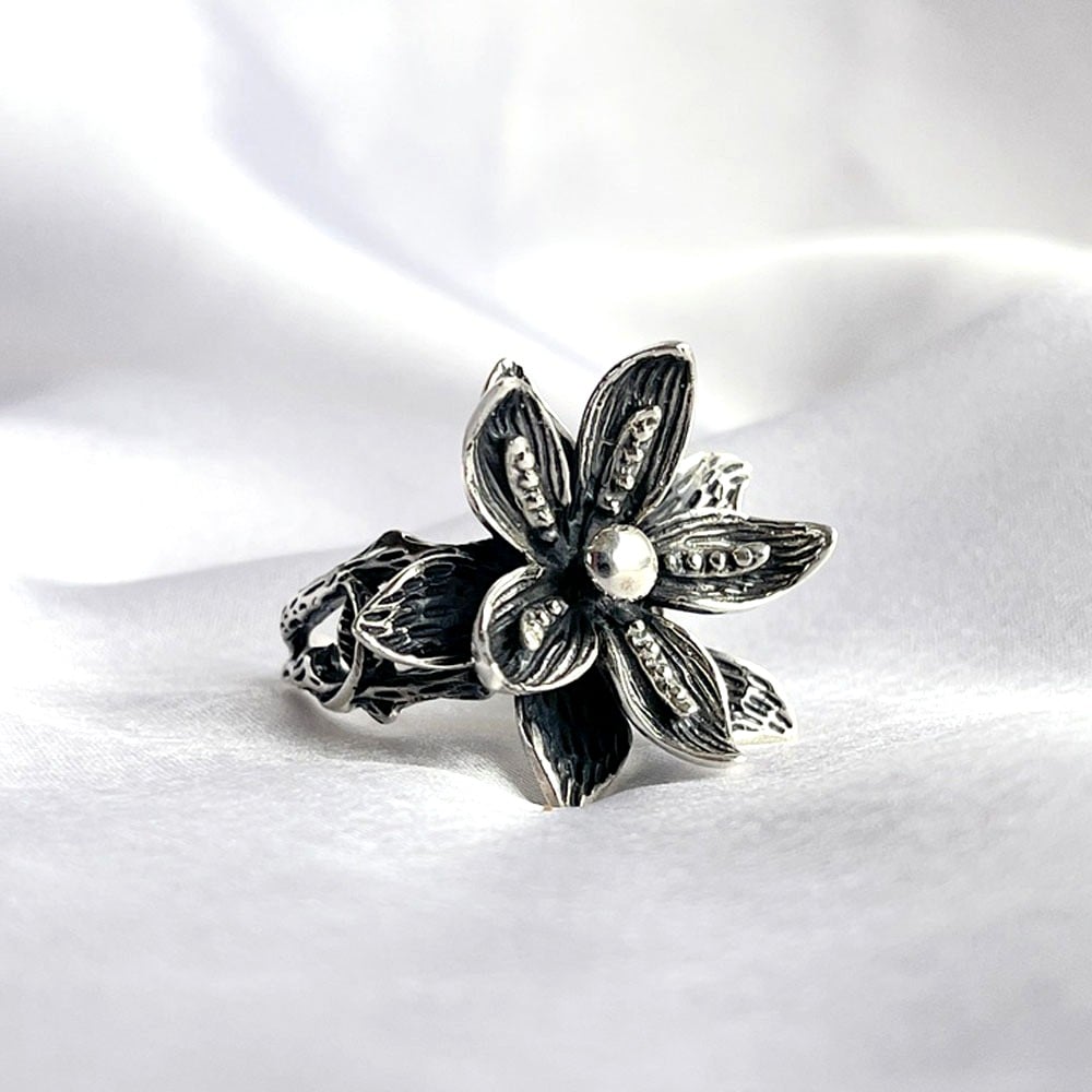 • 925 Sterling Silver Dual Floral Cocktail Statement Ring
