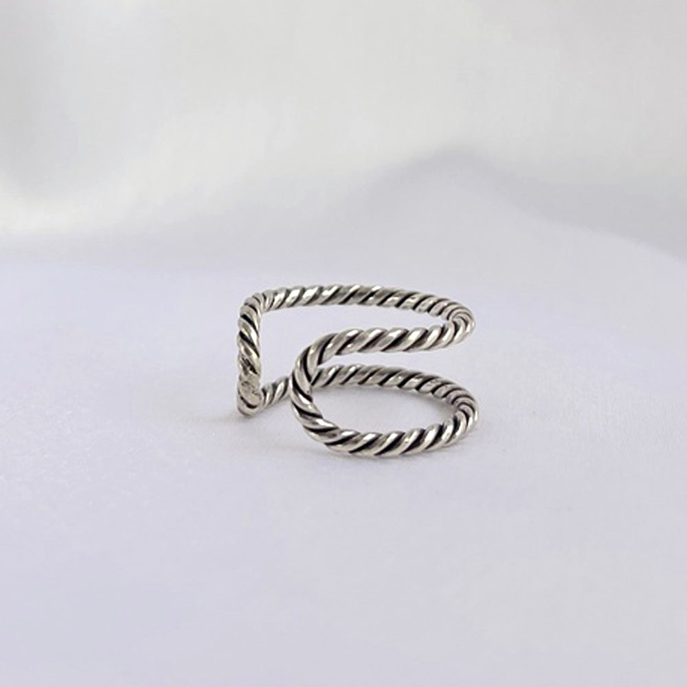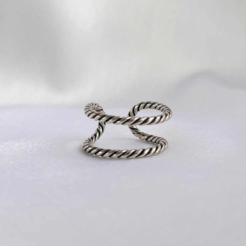 • 925 Sterling Silver Dual Layer Twisted Band Ring