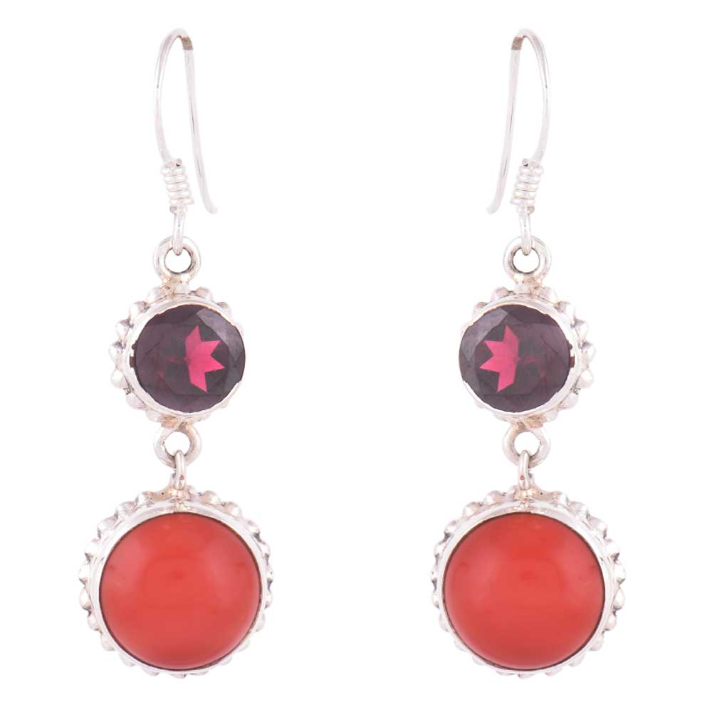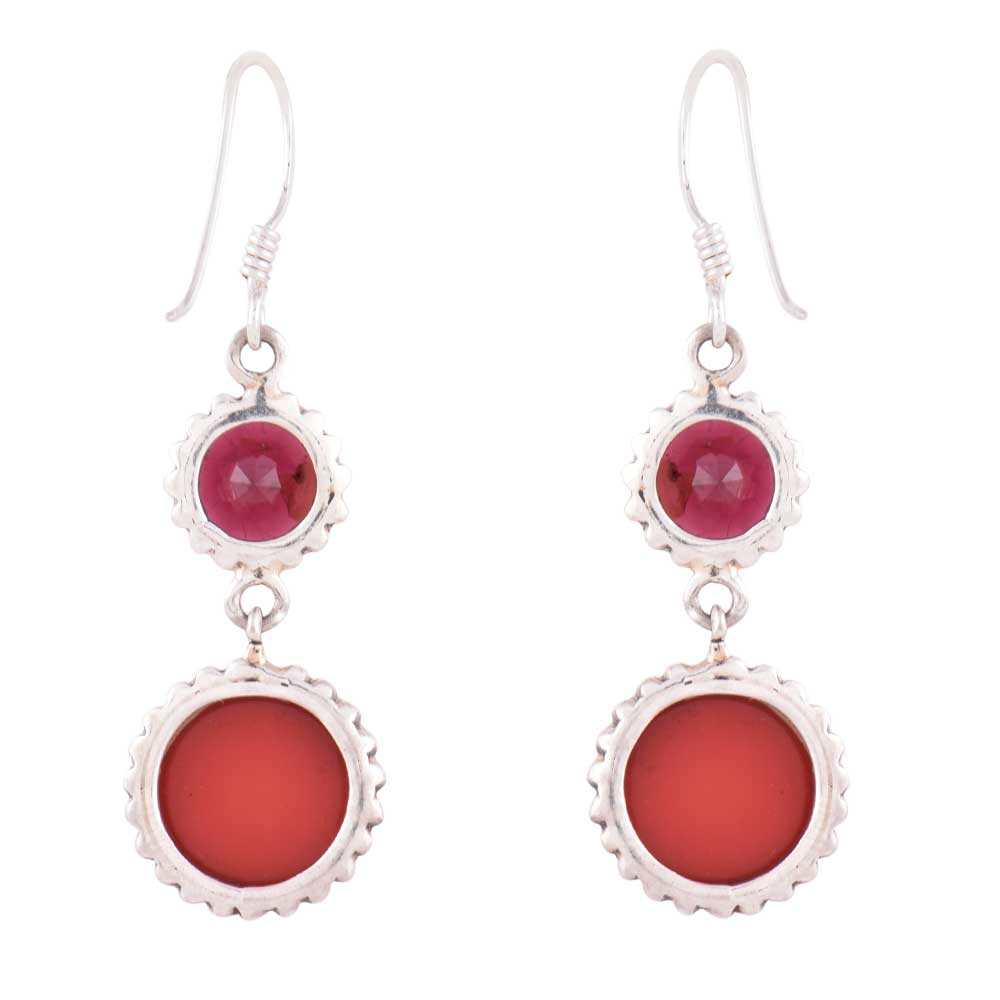 925 Sterling Silver Earrings Purple Amethyst & Carnelian Earrings