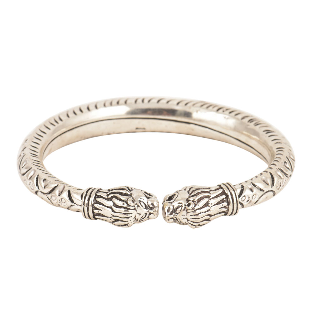 Made out of 925 Sterling Silver this light weight flexible bangle with tiger head looks very stylish and can be used for daily wear. This Handmade silver bangle can be matched with an assortment of apparels and can be worn to parties, weddings and other auspicious occasions.