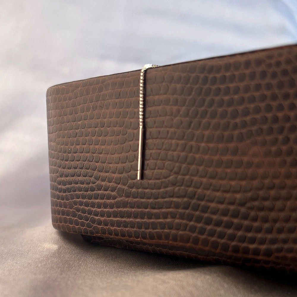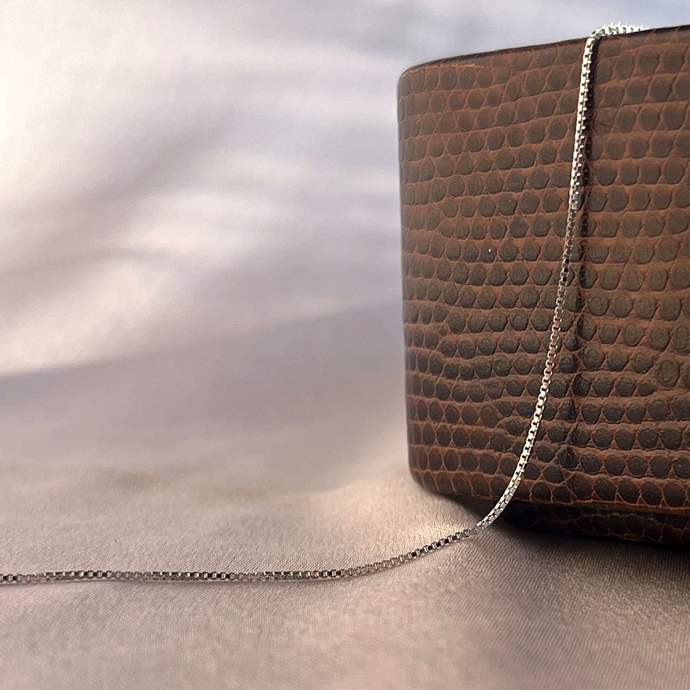 Wipe with a soft dry cloth after each wear to remove oils and moisture. Store in an airtight box away from chemicals and humidity to preserve its shine.