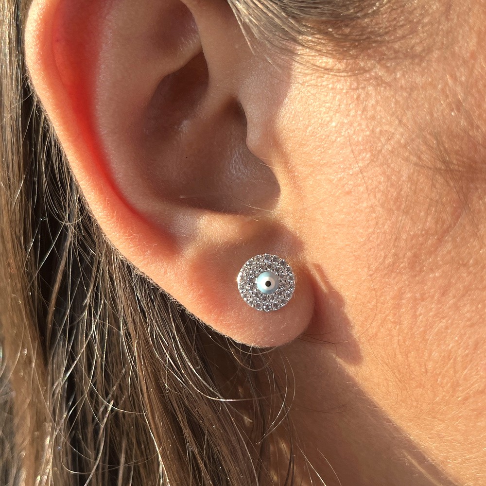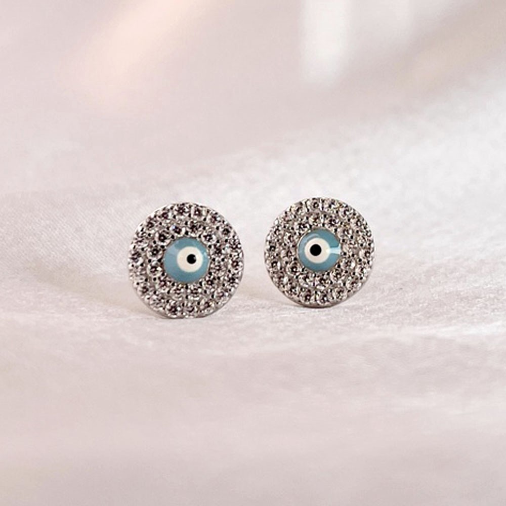 • 925 Sterling Silver Oval Evil Eye Earrings