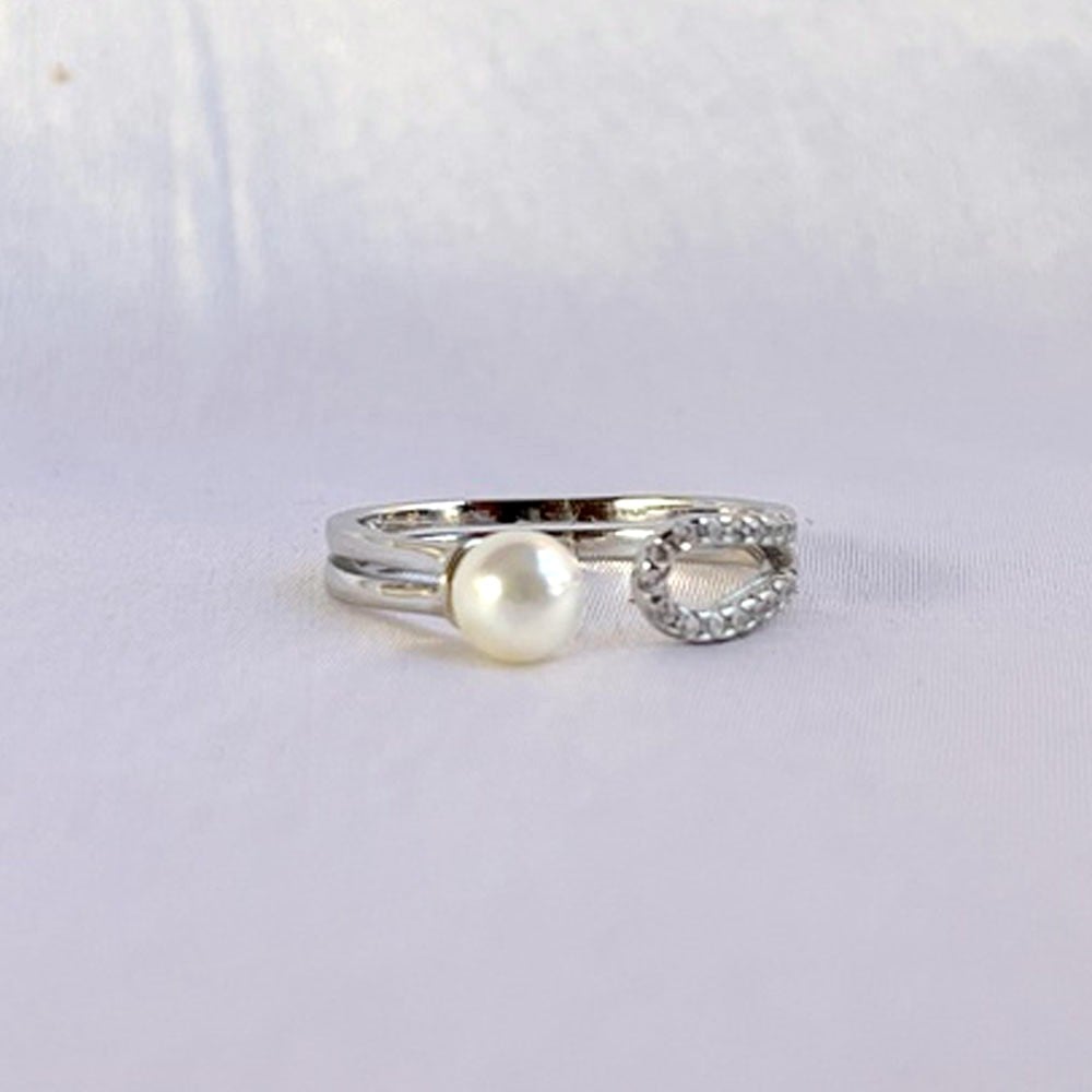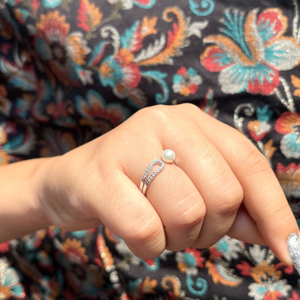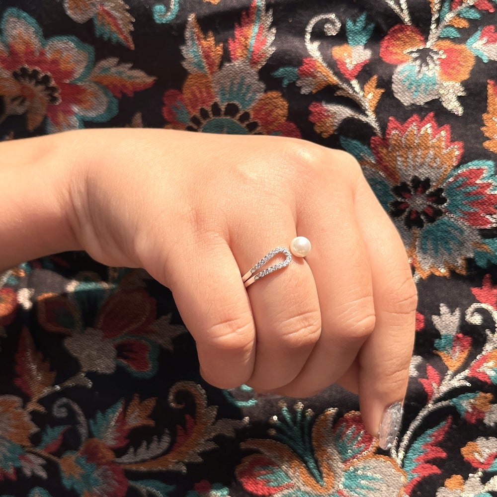 • 925 Sterling Silver Pearl Adjustable Elegant Band Ring
