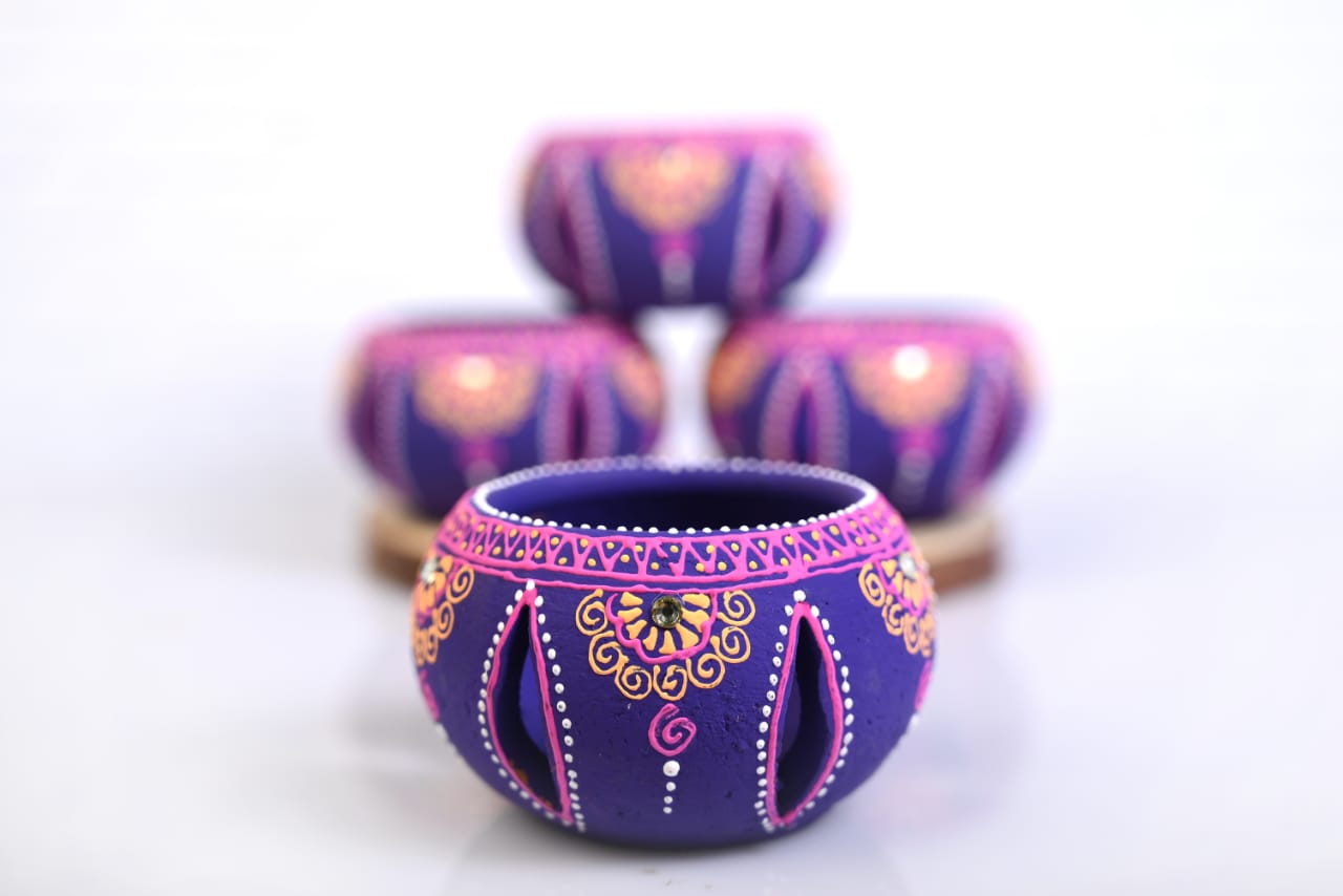Handmade Washable Terracotta Modern Turtle Diya Tealight T-Light Holder - White...