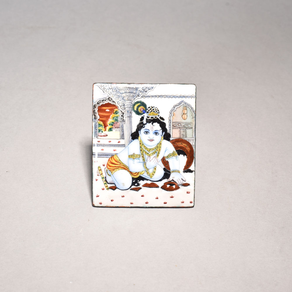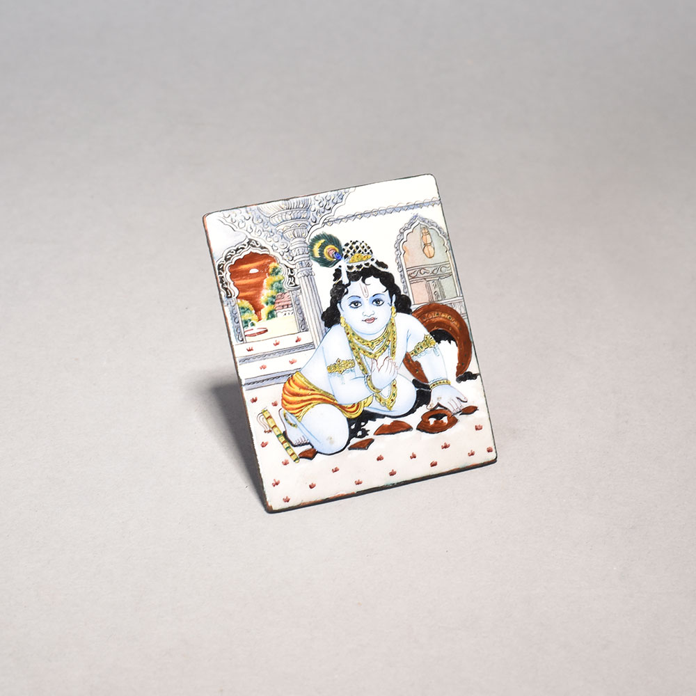 - Depicts the mischievous baby Krishna, the beloved avatar of the god Vishnu, indulging in his favorite treat - butter.