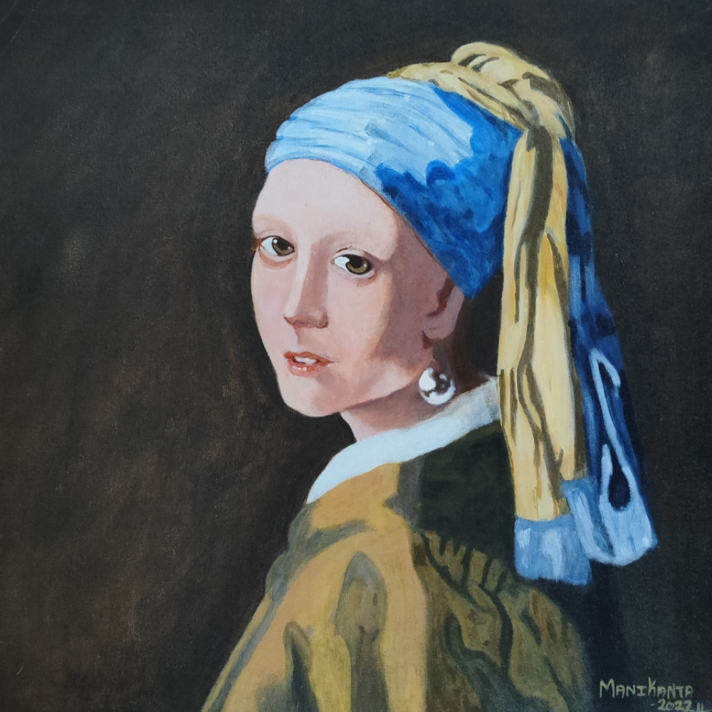 • A Girl with a Pearl Earring – Acrylic on Canvas by Artist B. Manikanta