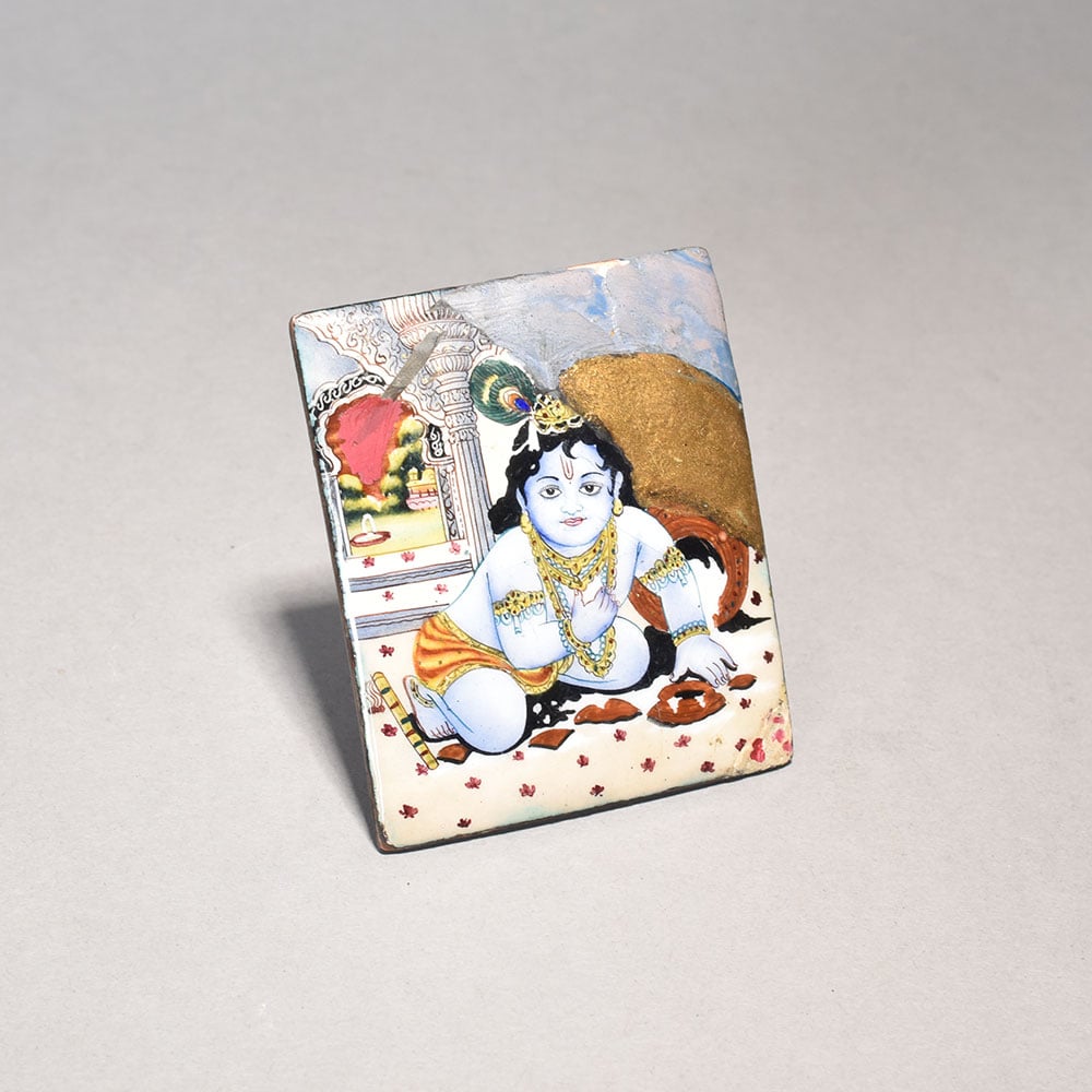 This Copper Painting of Laddu Gopal is a testament to the divine artistry that has captivated devotees for centuries. Gaze upon the mischievous smile and playful pose of the young Krishna, and feel your heart swell with devotion and reverence. Display this masterpiece in your home or temple, and let it serve as a constant reminder of the boundless love and divine grace that emanates from the beloved Kahna Ji. Whether you're a devoted follower of the Krishna tradition or simply appreciate fine art, this Copper Painting will transform your space into a sanctuary of spiritual harmony and aesthetic delight. Invite the enchanting presence of Laddu Gopal into your life and experience the transformative power of this sacred artwork.
