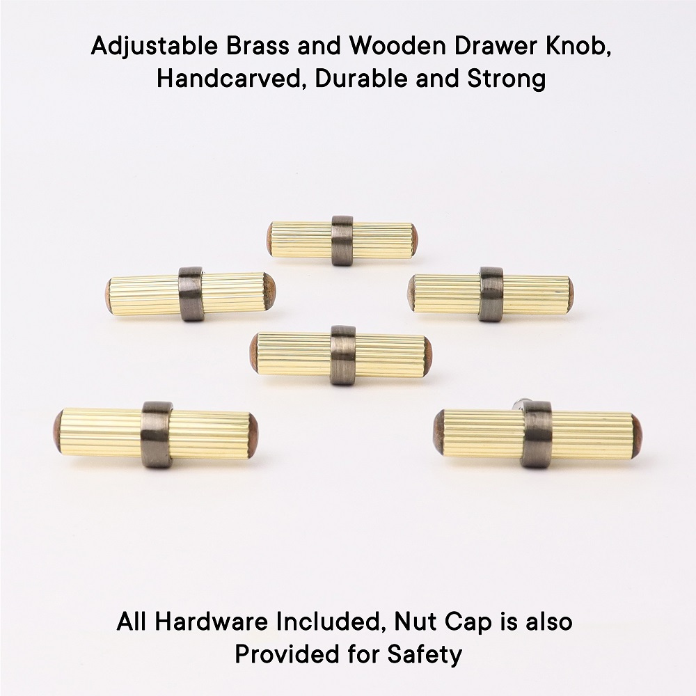 Handmade Adjustable Golden Brass and Wooden Tube Drawer Knob. Ideal for Drawer, Dresser, Cabinet, Wardrobe, Cupboard and Almirah.