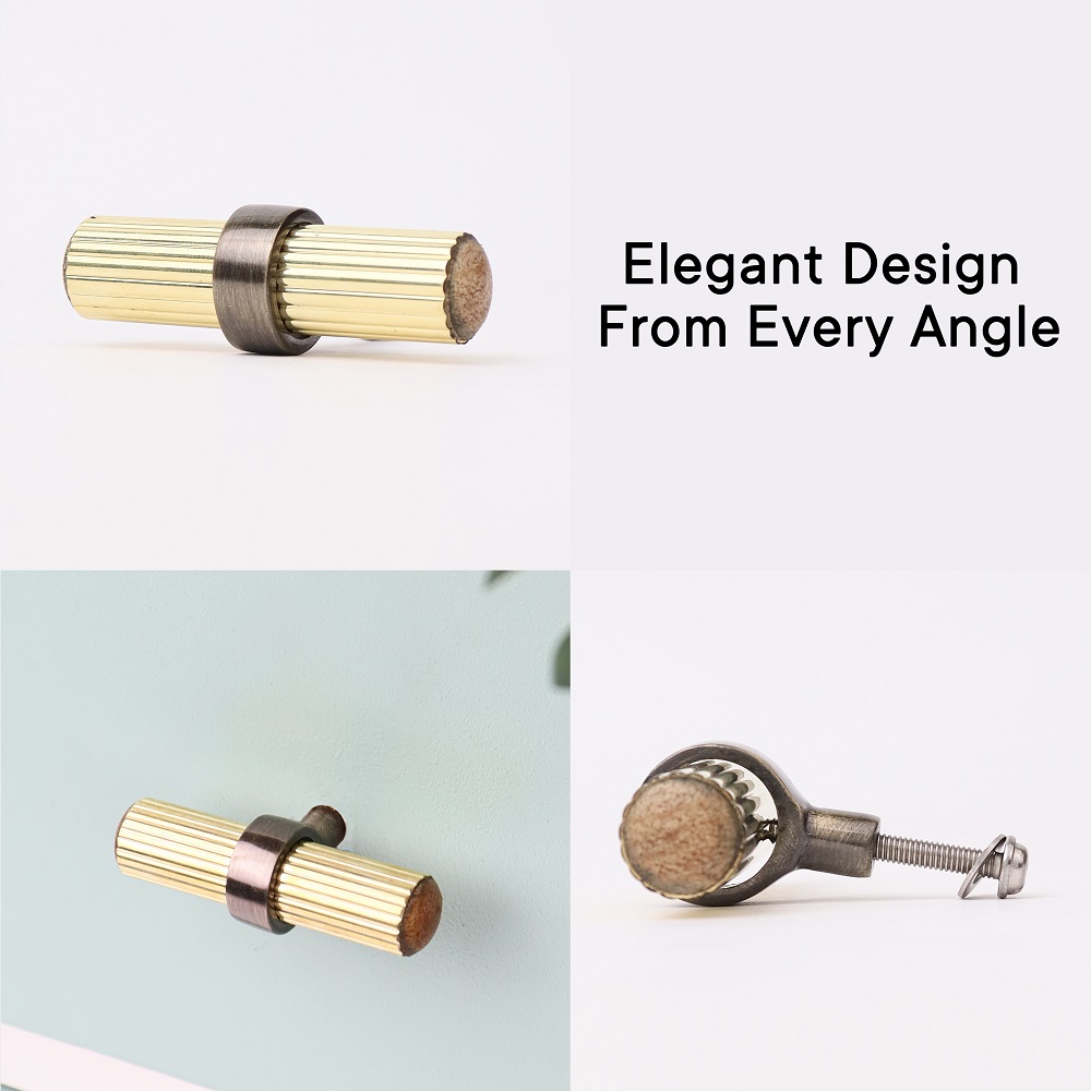 Adjustable Golden Brass and Wooden Tube Drawer Knob