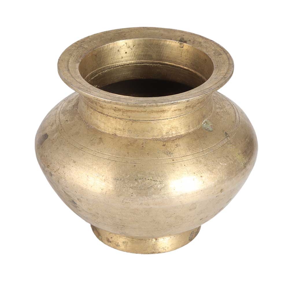 A charming looking holy water pot for Hindu rituals, pooja and auspicious occasions. This shiny gold coloured water pot has an important meaning in Hinduism. It is used in various rituals for storing holy water, rice and milk. Since it is made of high quality bell metal, it spreads positive energy in the environment when it is held facing east or north. It has a very unique shape with a narrow neck and a large belly. Its sturdy appearance makes it an eye-catching artefact in an exhibition, museum or vintage collection. Place this alluring pitcher in your home to enhance the interior decor. An auspicious gift for any special and festive occasion for your loved ones and relatives.