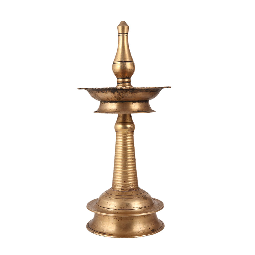 Handmade by skilled artisans in India, this brass oil lamp is a perfect embodiment of traditional craftsmanship. Its golden finish and ornate design exude elegance and make it a stunning piece of art. Its sturdy appearance ensures durability, making it a cherished item for generations. This oil lamp is not only a decorative piece but also an essential item for pooja and auspicious occasions, as it is used with mustard oil or ghee and a cotton wick. Gift it to your loved ones on special or festive occasions or add it to your collection to experience the rich cultural heritage of India.