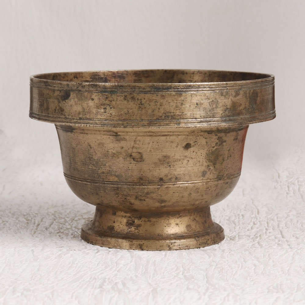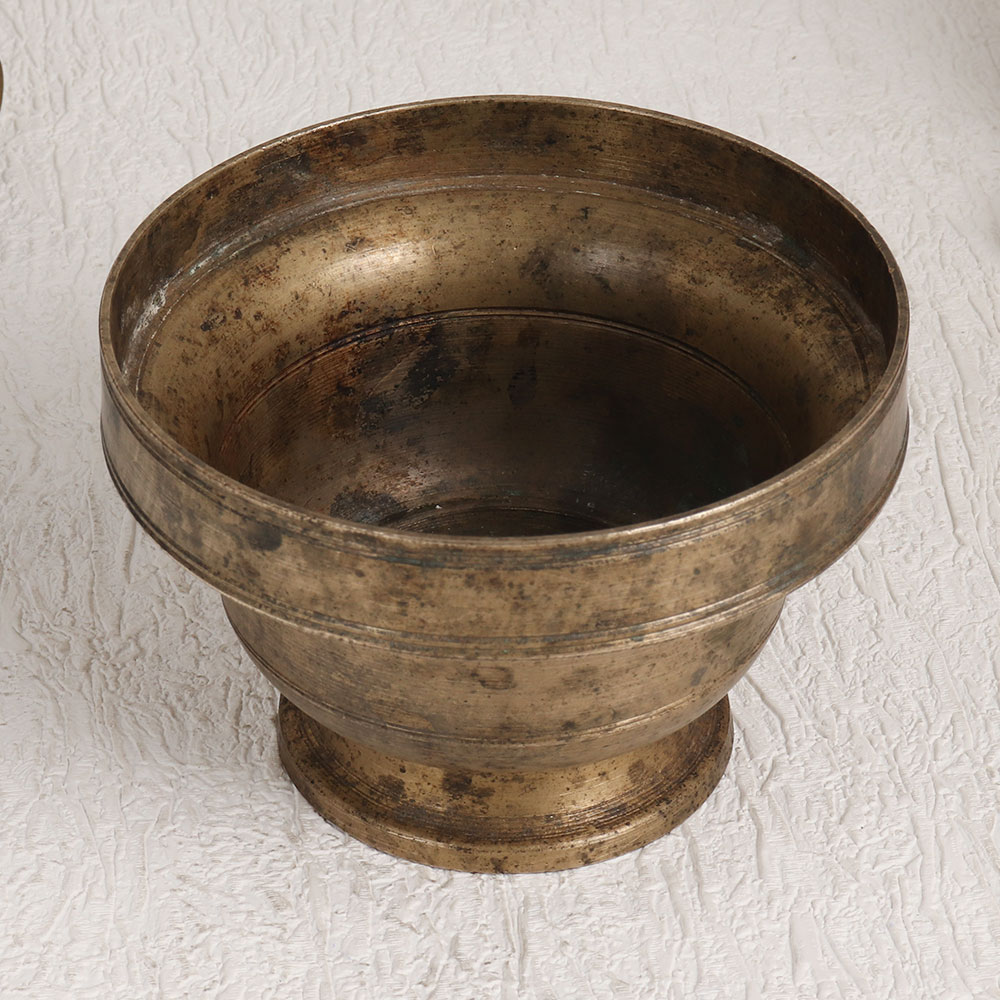 The Vintage Brass Kumkum Bowl which is exquisitely crafted in an antique brown finish by highly skilled and experienced Indian artisans specializing in South Indian Art. This masterpiece is a testament to their dedication and craftsmanship using only the finest quality brass materials. The Vintage Brass Kumkum Bowl is a versatile addition to any setting, be it your home, office, restaurant, hotel, cafe, or shop. Its intricate design and rich, aged patina make it a stunning decorative piece that adds a touch of vintage charm to any environment. Beyond its aesthetic appeal, this bowl serves a spiritual purpose. Traditionally used during prayers to store kumkum tilak, it embodies the essence of tradition and spirituality. It can be a cherished addition to your personal vintage collection, a standout exhibit at an antique showcase, or a thoughtful gift for loved ones during special, festive, or auspicious occasions.