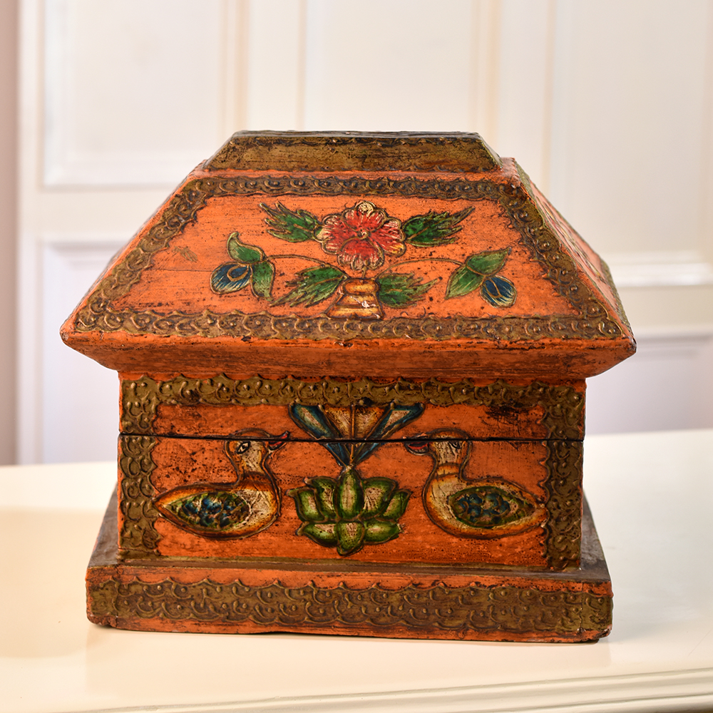 Buy a Hut-Shaped Wooden Jewelry Box online that is a captivating blend of functionality and artistry that transcends mere storage. This handcrafted masterpiece is more than just a box, it's a work of timeless elegance, designed for those who appreciate both form and function. Crafted from high-quality wood, the box features a unique hut shape that adds a touch of rustic charm to any space. Its multi-colour finish creates a vibrant and lively atmosphere, making it an ideal addition to your home, office, cafe, restaurant, or hotel. The meticulously engraved bird and flower motifs on the lid elevate the box to a level of artistic sophistication, showcasing the skill and precision of our craftsmen. This versatile piece is not just a practical storage solution for your jewelry and small items but also serves as a captivating decorative element. Its aesthetic appeal makes it suitable for display at exhibitions, turning any showcase into a visual delight. Celebrate special occasions by gifting this exquisite box to your loved ones, offering them a blend of beauty and utility that will be cherished for years to come.