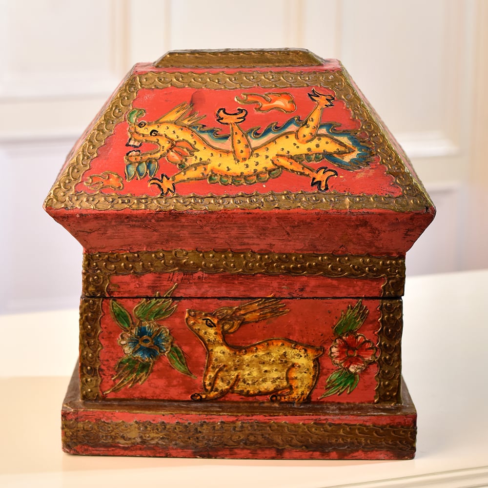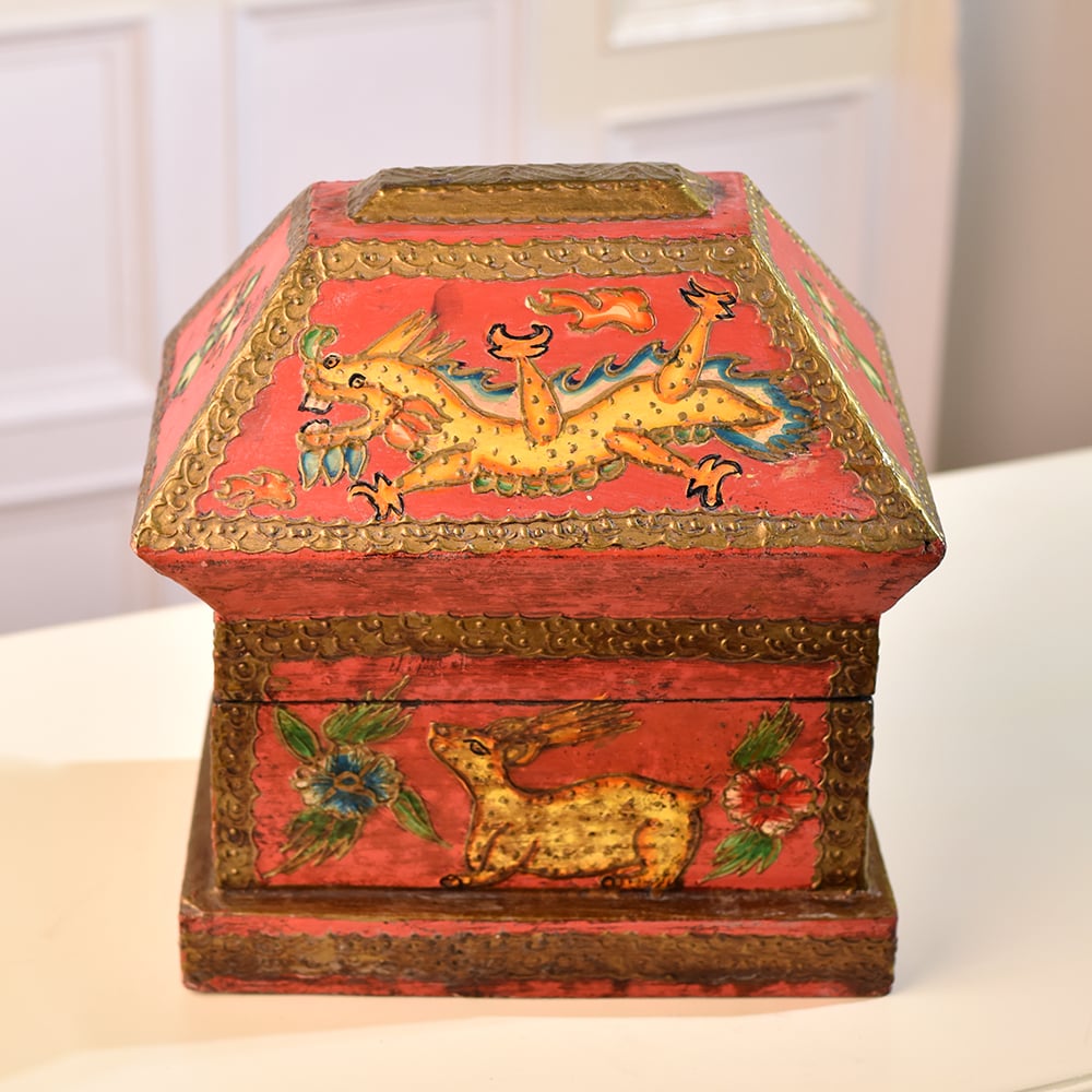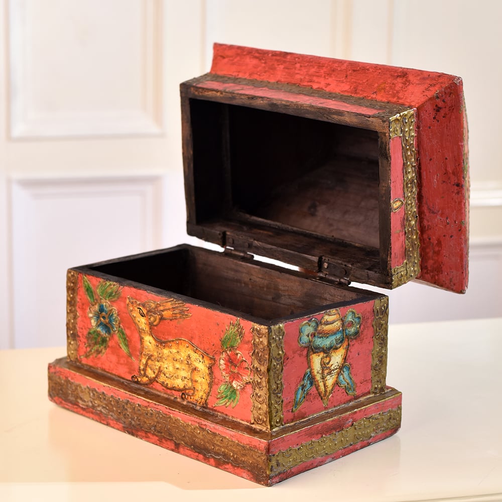 Buy a Wooden Hut-Shaped Jewelry Box online that is a fusion of functionality and aesthetic appeal. This charming box is not merely a storage solution, it's a piece of art designed to elevate any space. Crafted with precision, the hut shape adds a rustic charm, while the multi-colour finish brings vibrancy to your surroundings. Adorned with intricate engravings of dragons, animals, and flowers, this box tells a tale of craftsmanship and attention to detail. The delicate designs create a captivating visual that adds a touch of elegance to your home, office, cafe, restaurant, or hotel. Its versatility extends beyond personal spaces, making it a captivating addition to exhibitions. Perfect for storing jewelry and small items, this box doubles as a stunning display piece. Its beauty transcends boundaries, making it an ideal gift for your loved ones on special, festive, or auspicious occasions.